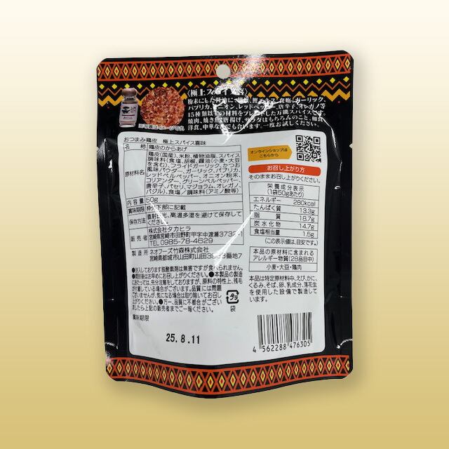 あの喜スパイスを使用した、大人気のおつまみ鶏皮。サクサクとまらない美味しさです。