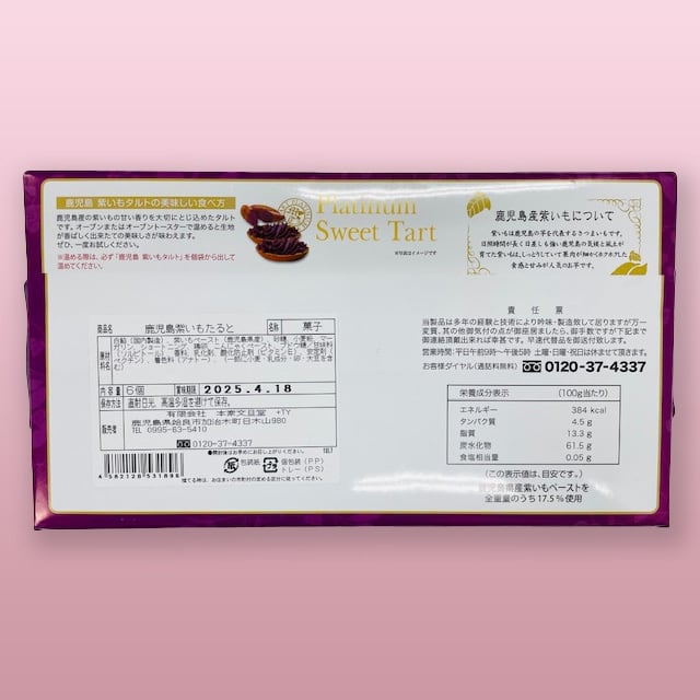 鹿児島県産、紫いもを使用した濃厚タルトです。