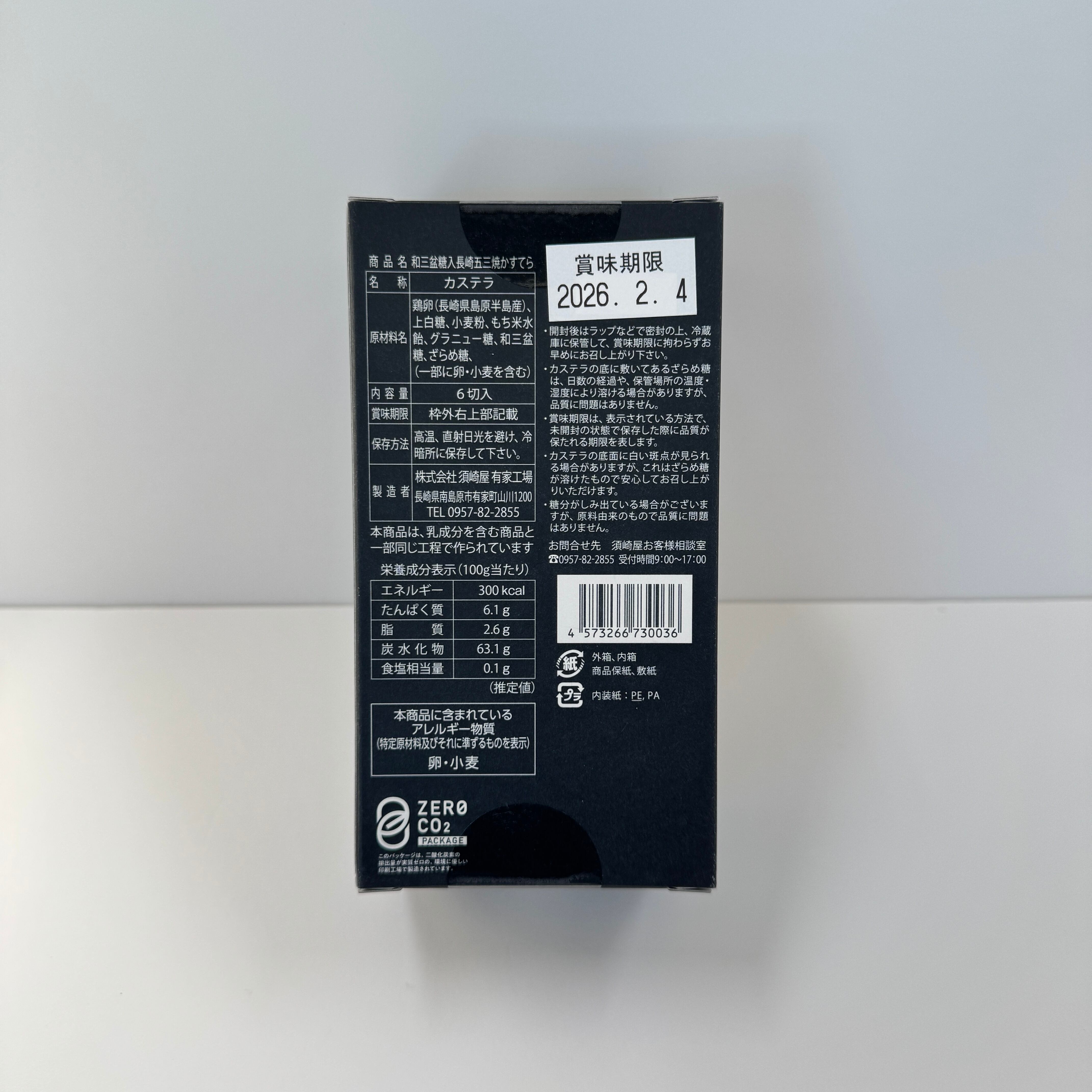 生地には希少な阿波和三盆糖とブランド卵を使い、ザラメは高純度の上一等氷砂糖を砕いて敷き詰めました。深い濃厚な味わいとしっとり食感、そしてすっきりとした後味をお楽しみいただけます。 内容量 6切れ サイズ(縦×横×高さ) 15.5×8.5×6.5