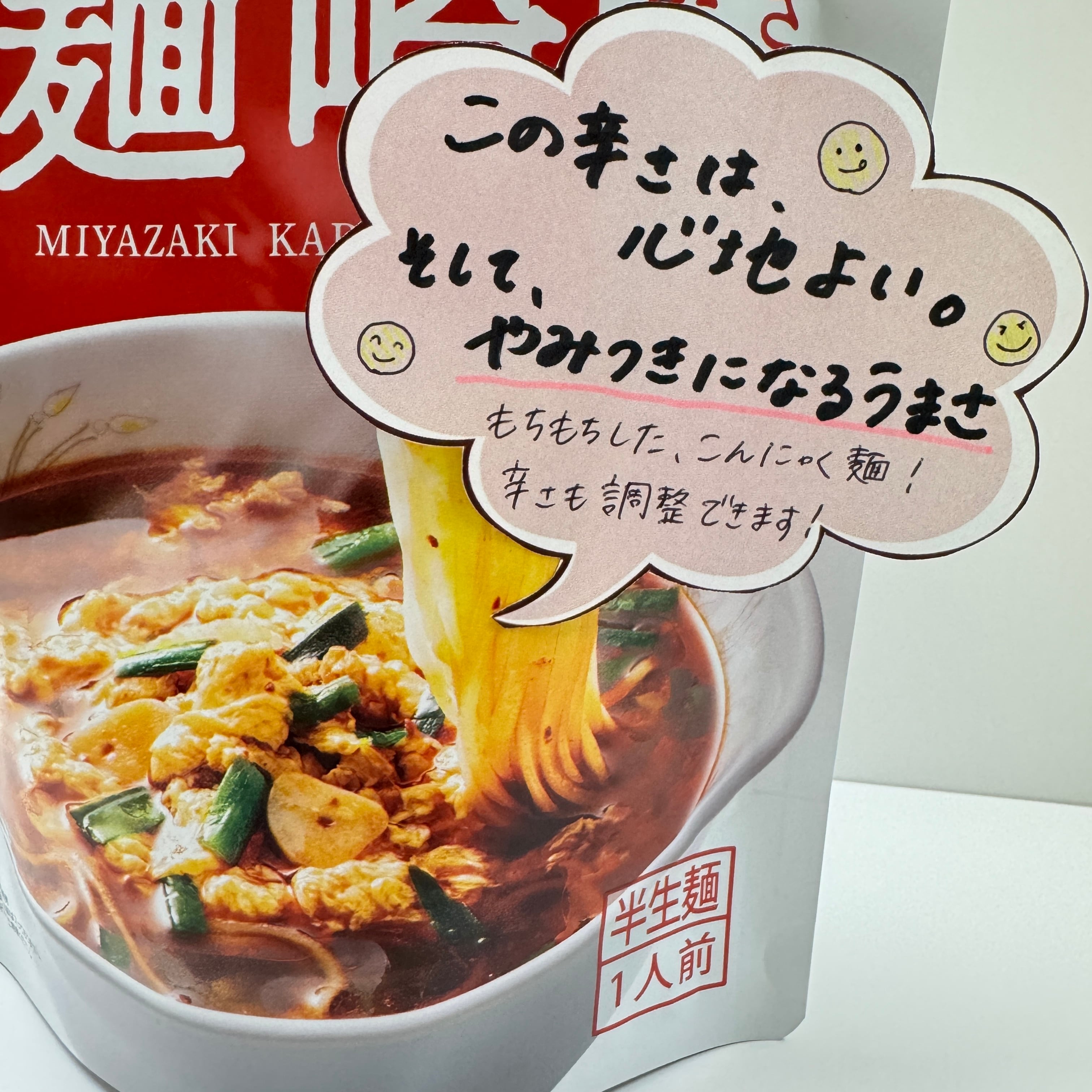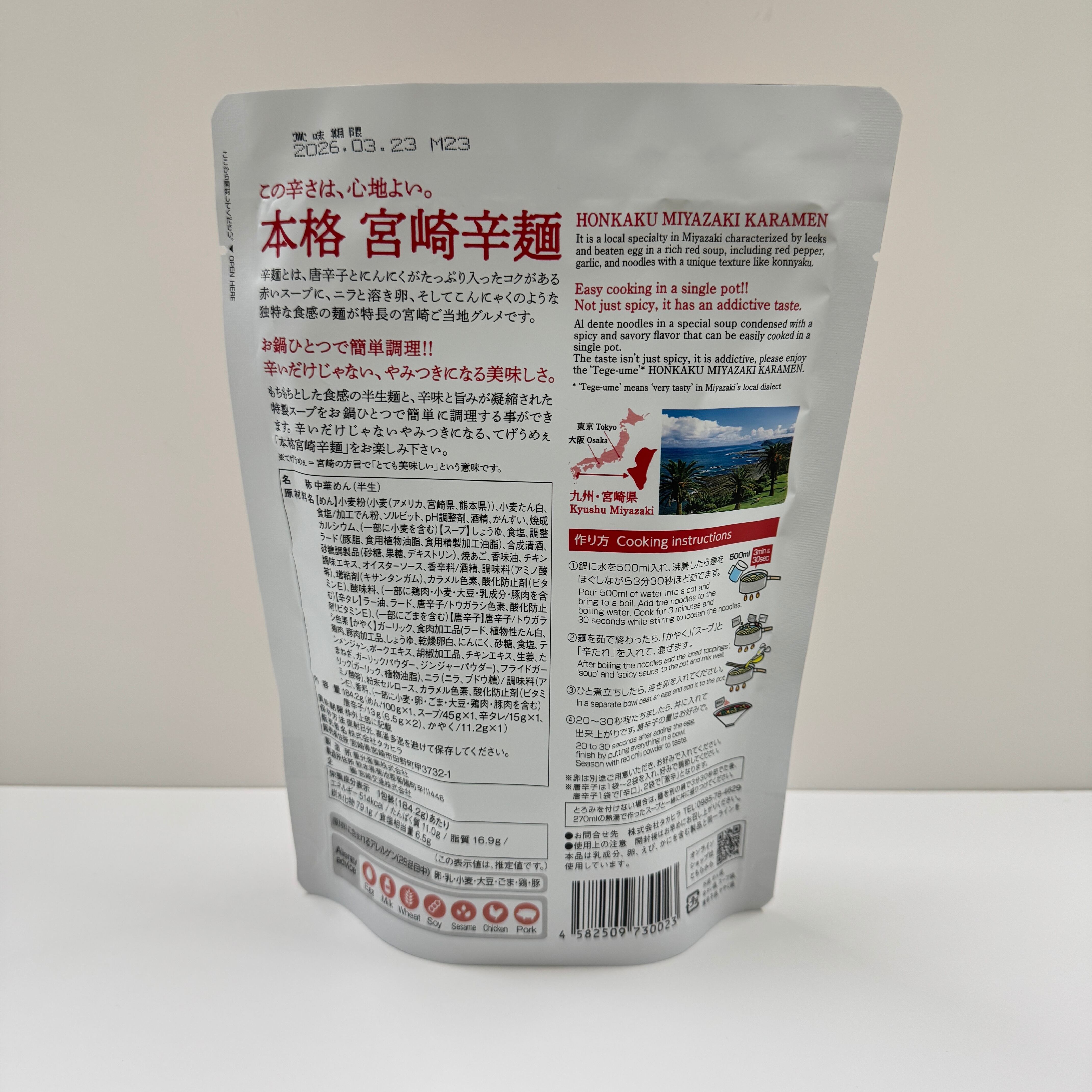 コクと奥行のある心地よい辛さが自慢! もちもちした食感の半生麺と、辛味と旨みが凝縮された特製スープを 鍋一つで簡単に調理できます。 こちらは、1人前です。 (サイズ 縦23㎝×横17㎝×高さ5.5㎝)