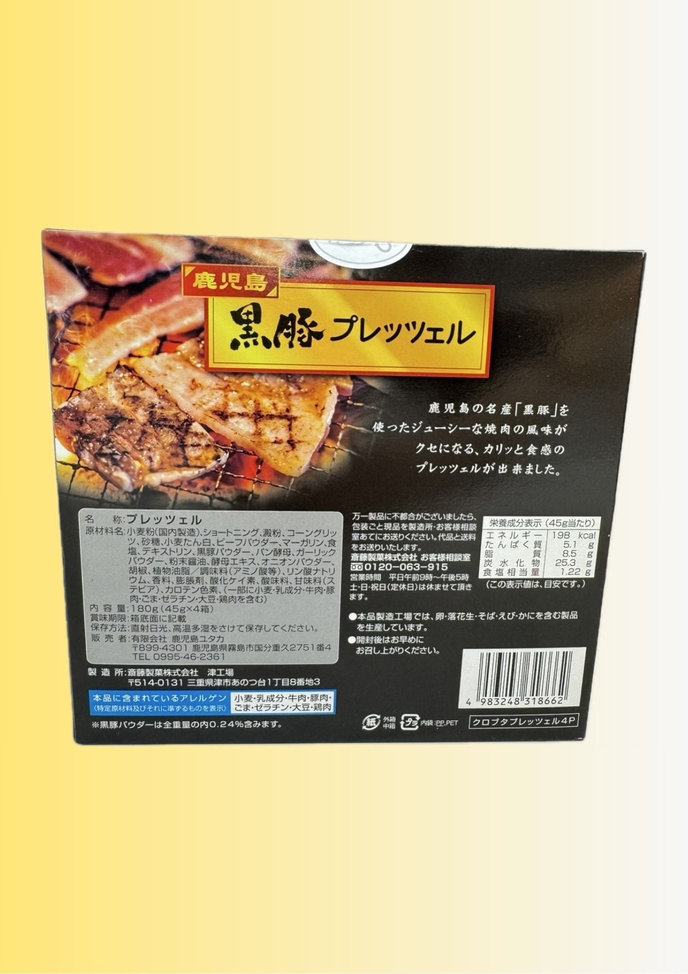 鹿児島名産の黒豚を使用しており、黒豚の旨味がギュッと詰まった焼肉風味のプレッツェルです。4箱入りなので、小分けにもピッタリ!カリッとした食感がクセになること間違いなし!