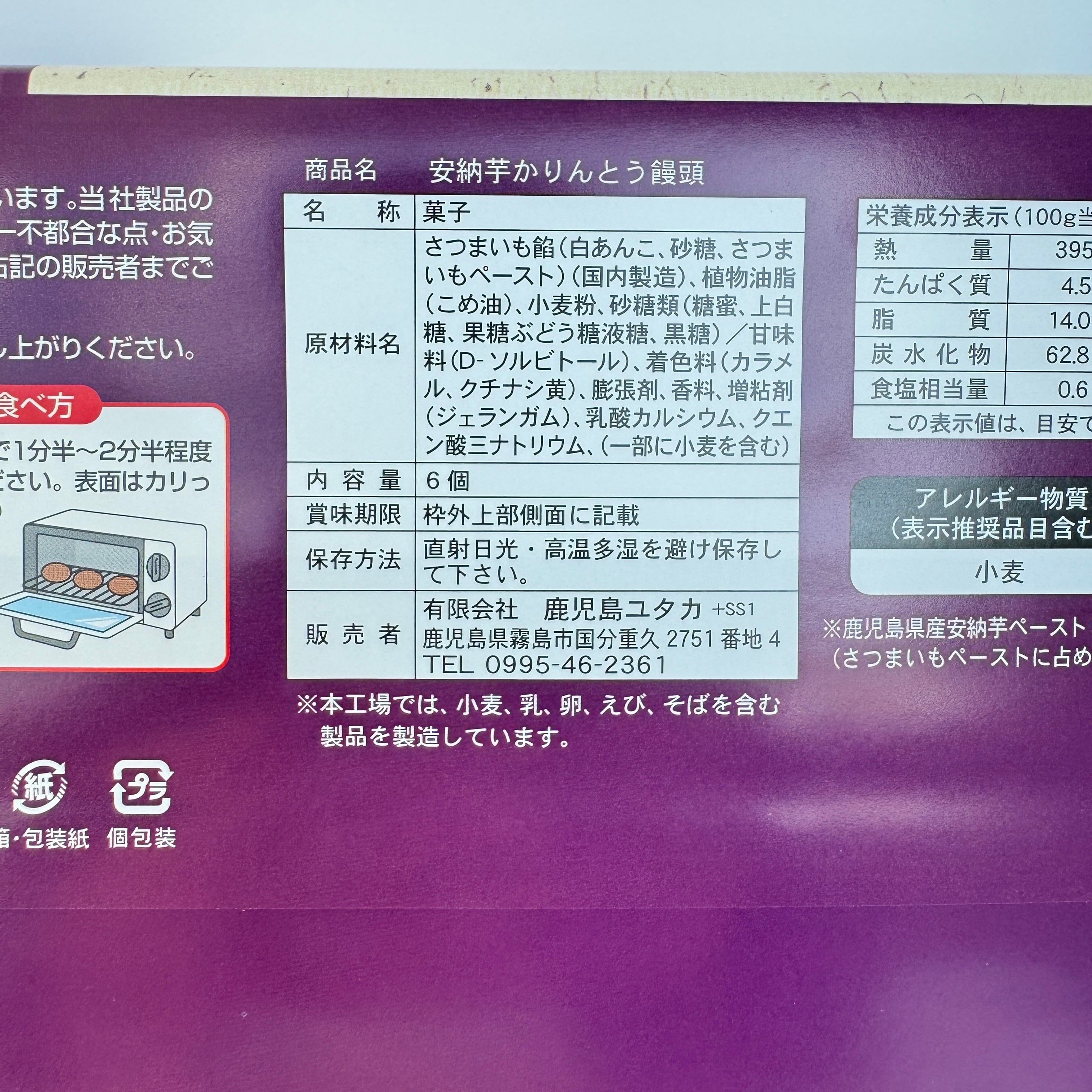 鹿児島県産の安納芋を餡に使用した、ほろ苦いけど、甘さがある、大人のかりんとう饅頭です。 内容量 6個 サイズ(縦×横×高さ) 15×21×4.5