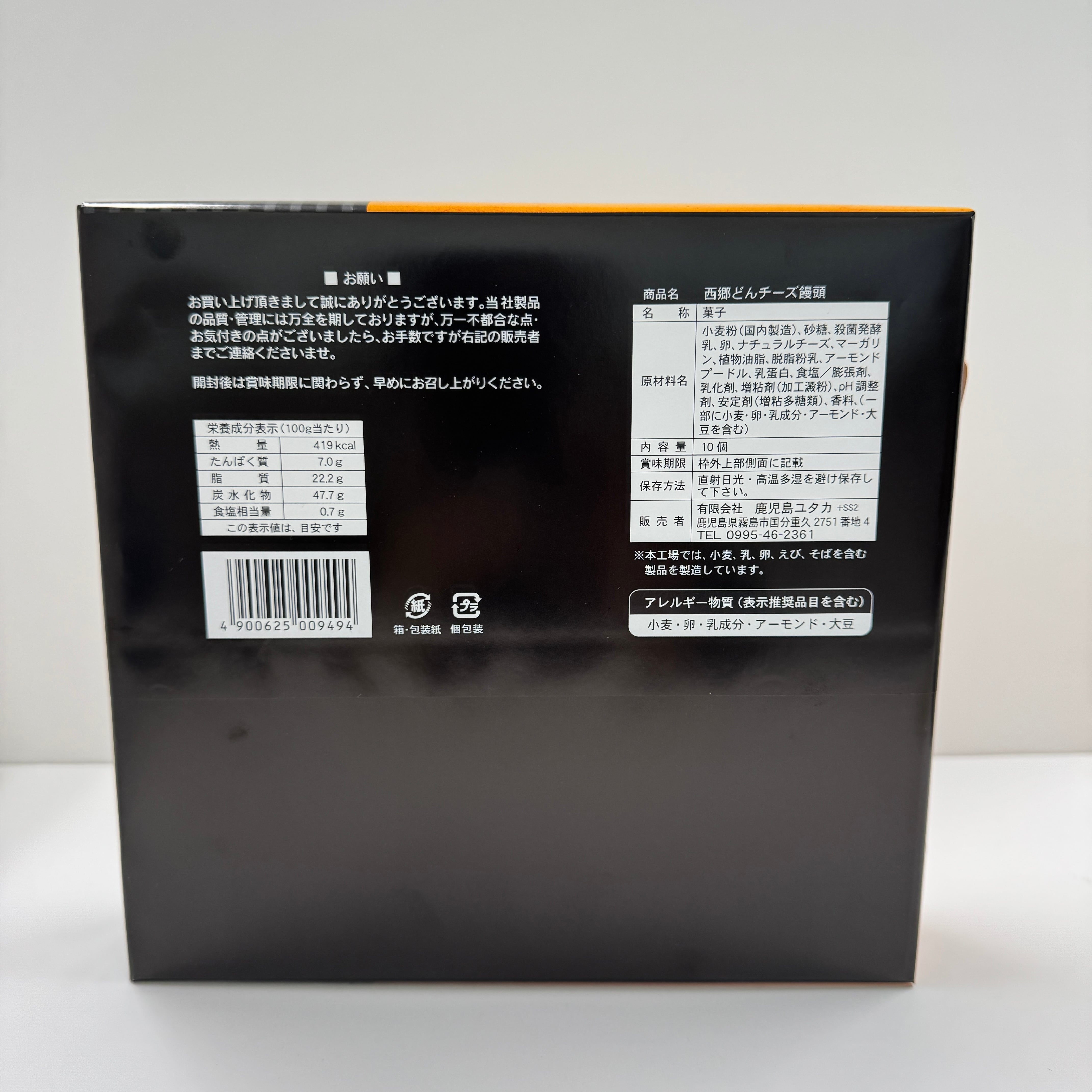 柔らかな生地の中には濃厚なチーズがぎっしり! 西郷どんの姿の凛々しいパッケージが目をひきます! 内容量 10個 サイズ(縦×横×高さ) 20×21×4.5