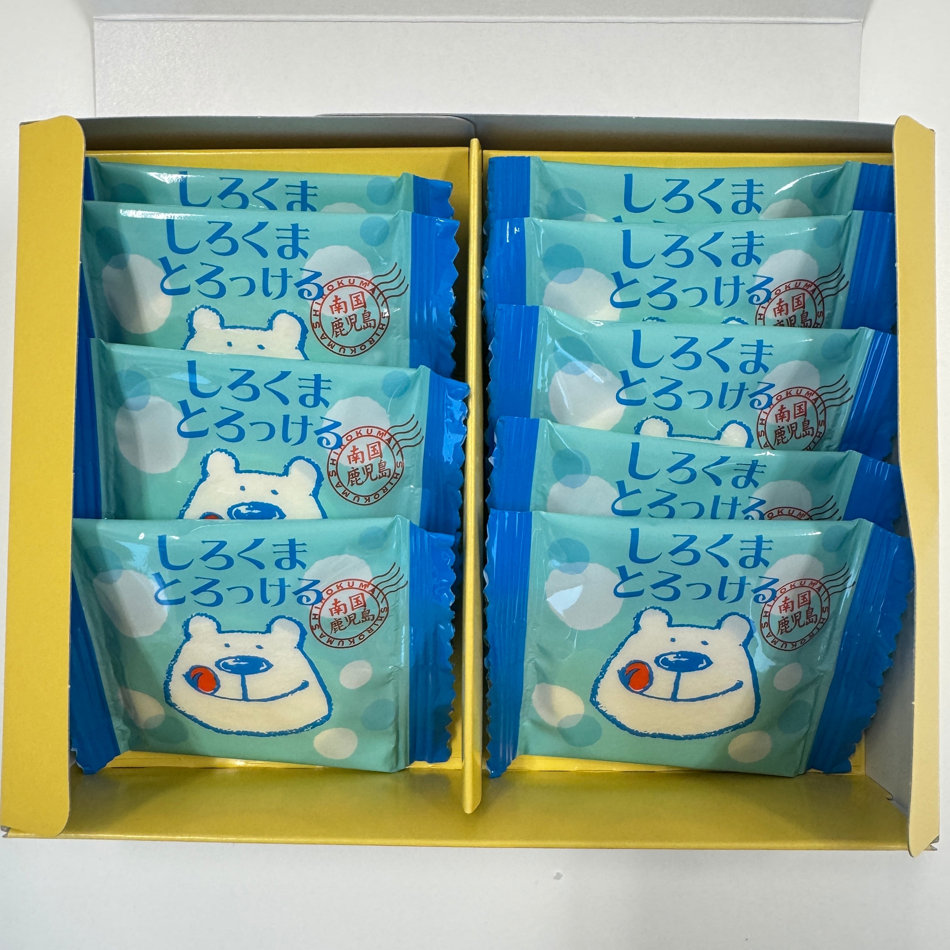 鹿児島名物『しろくま』をイメージした練乳味の新食感のクッキーです!お口の中でほろほろと甘くとろけます。常温はもちろん、凍らせたり、冷やして食べると色々な食感をお楽しみいただけます。 内容量 10枚 サイズ(縦×横×高さ) 14.5×18.5×4