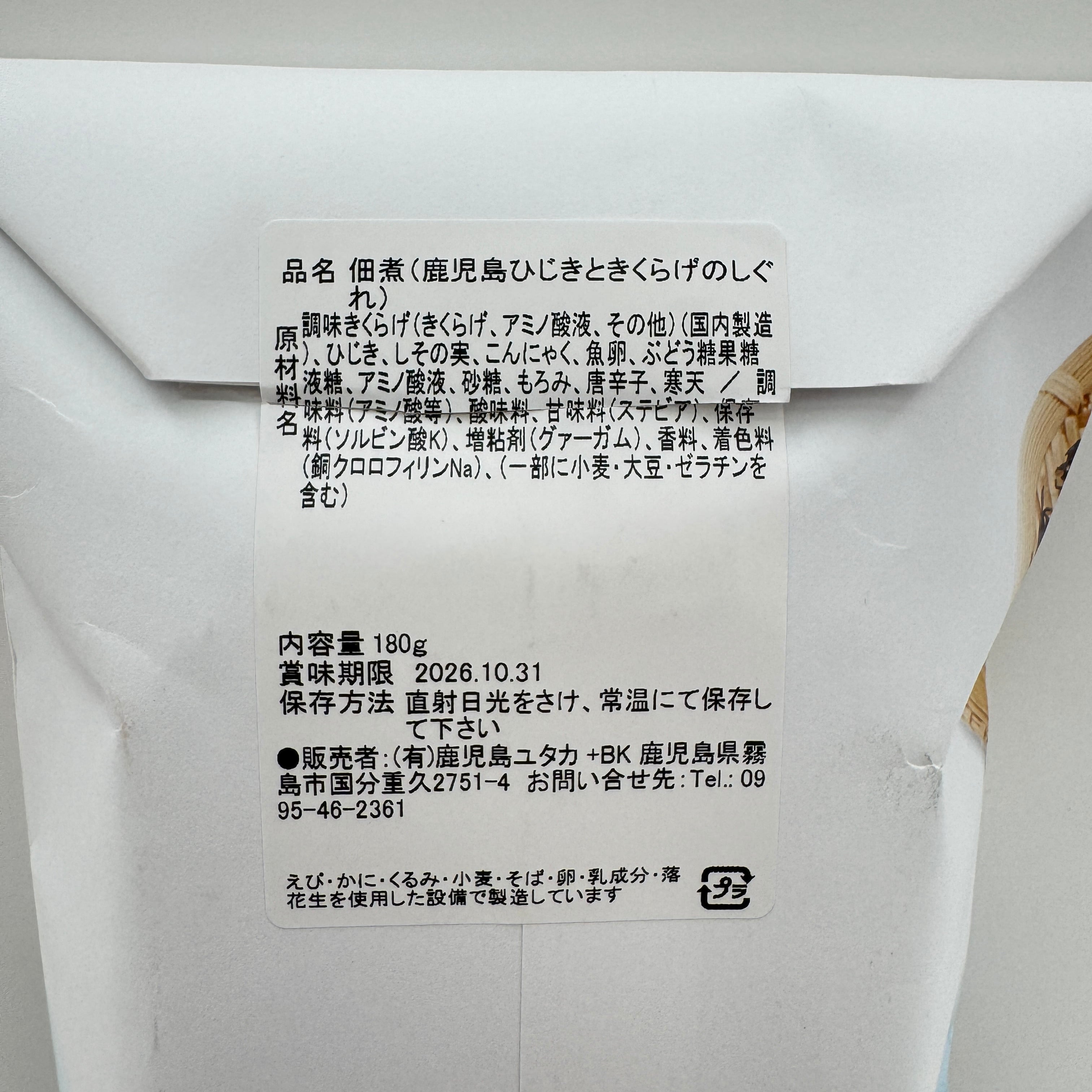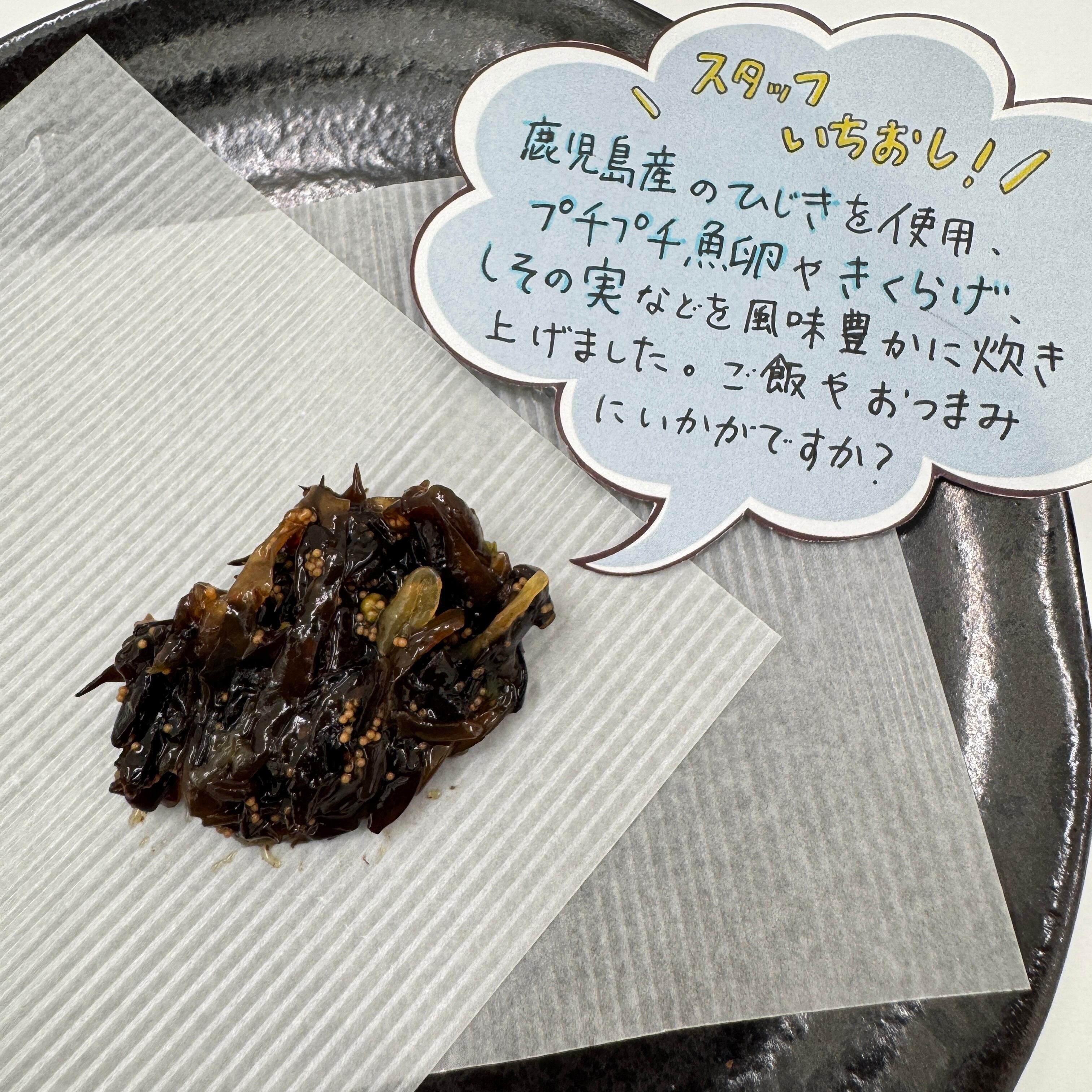 鹿児島県産のひじきを使用!プチプチの魚卵やきくらげ、しその実それぞれの食感が特徴的です。 ※こちらは、常温で保存可能です。 内容量 180g サイズ(縦×横×高さ) 21×12×3.5