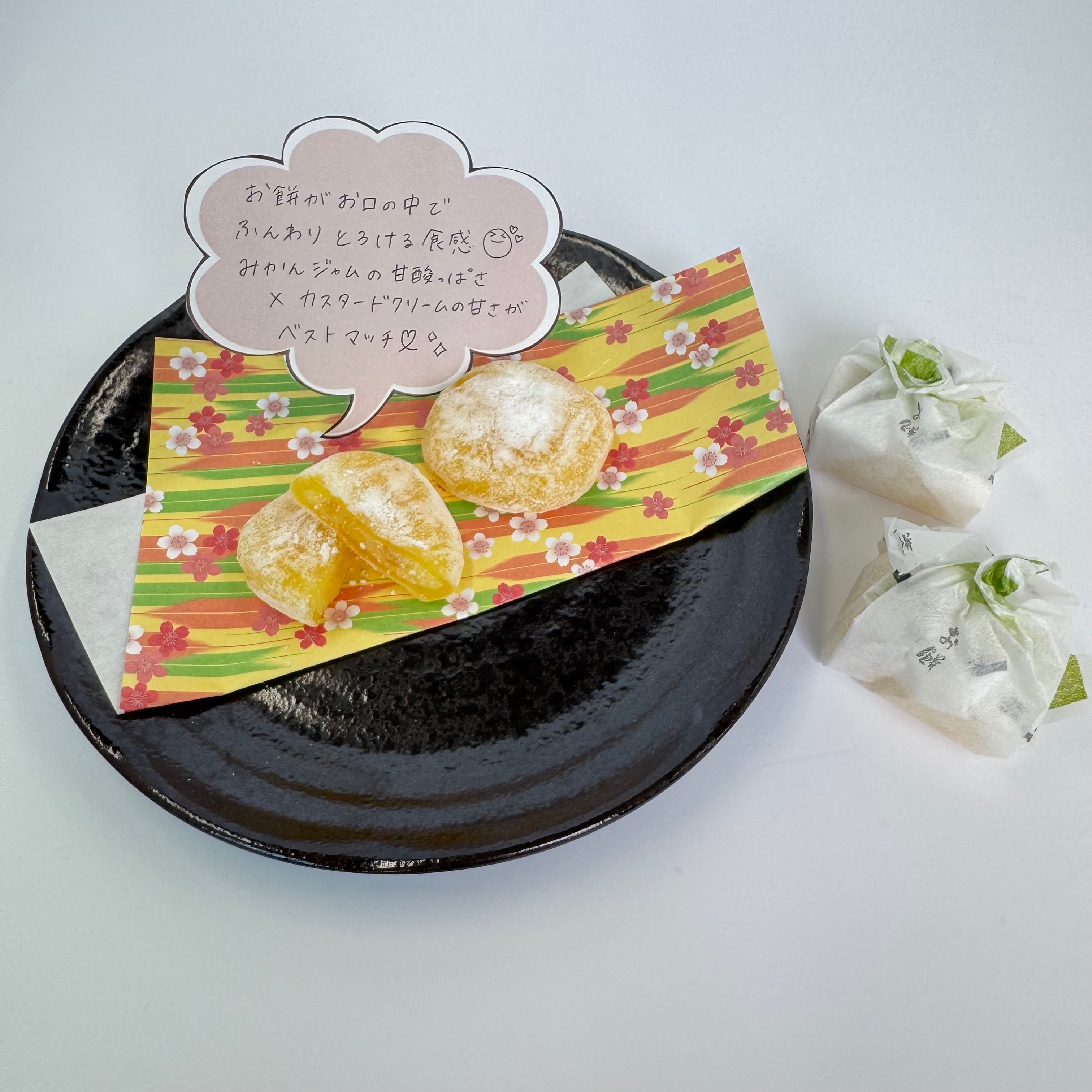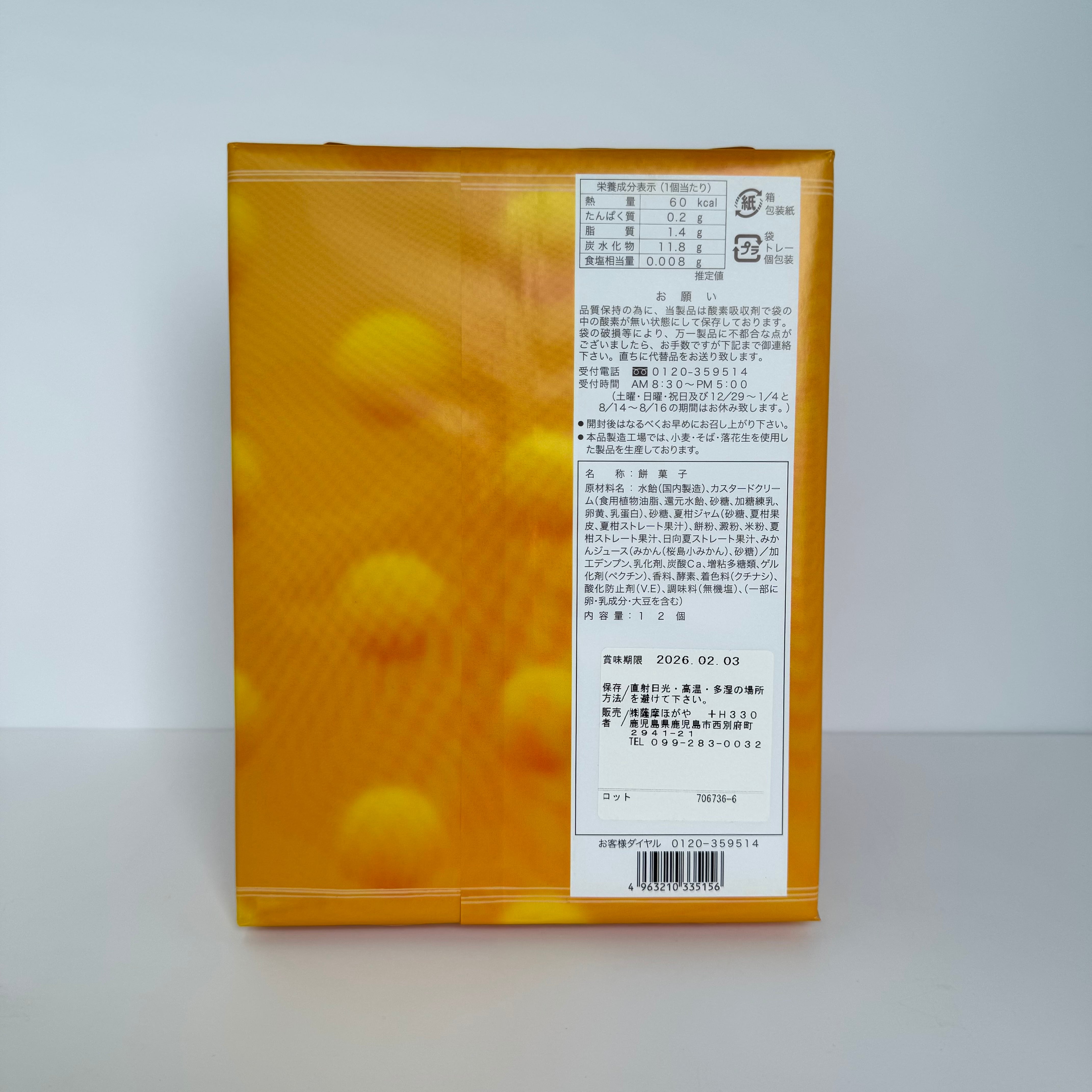 鹿児島県産の桜島小みかんを使用した、お口の中でふんわりとろける食感の大福です。 中には甘酸っぱいみかんジャムと甘いカスタードクリームが入っています。 内容量 12個 サイズ(縦×横×高さ) 22.5×17×3.5