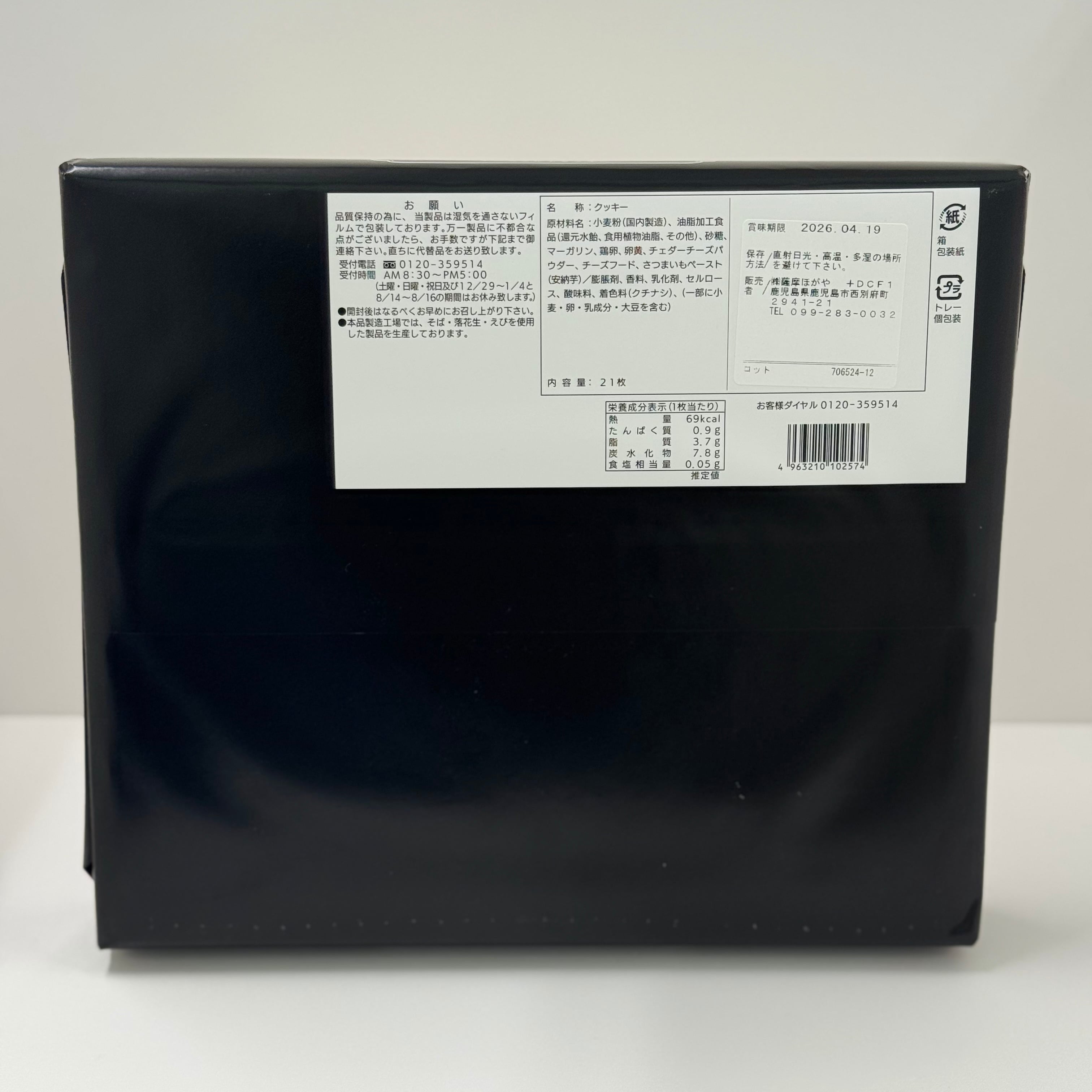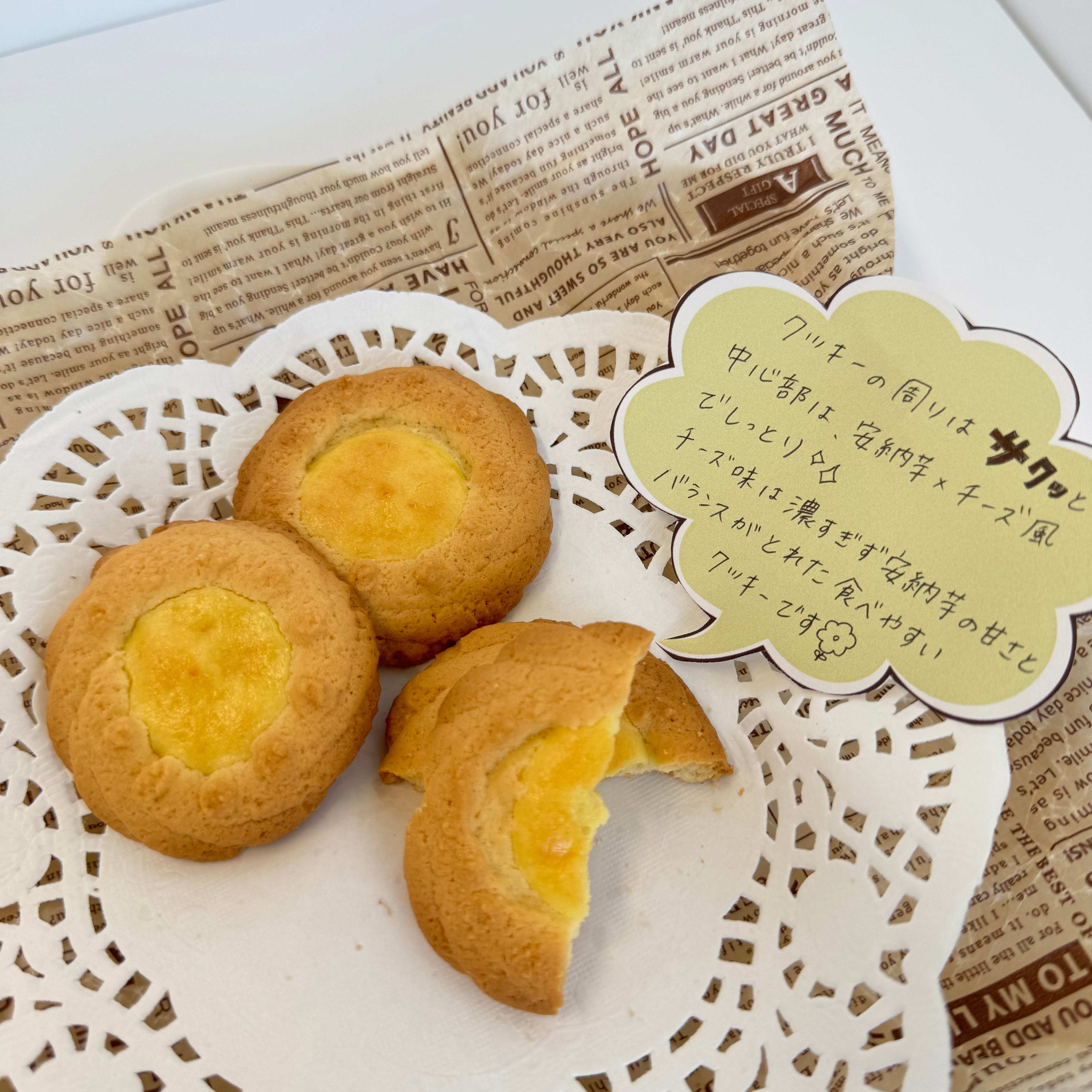 鹿児島県産の安納芋と濃厚なチーズがマッチしたタルトクッキーです。 クッキーの形も可愛らしく、おすすめです。 内容量 21枚 サイズ(縦×横×高さ) 25.5×29×4.5
