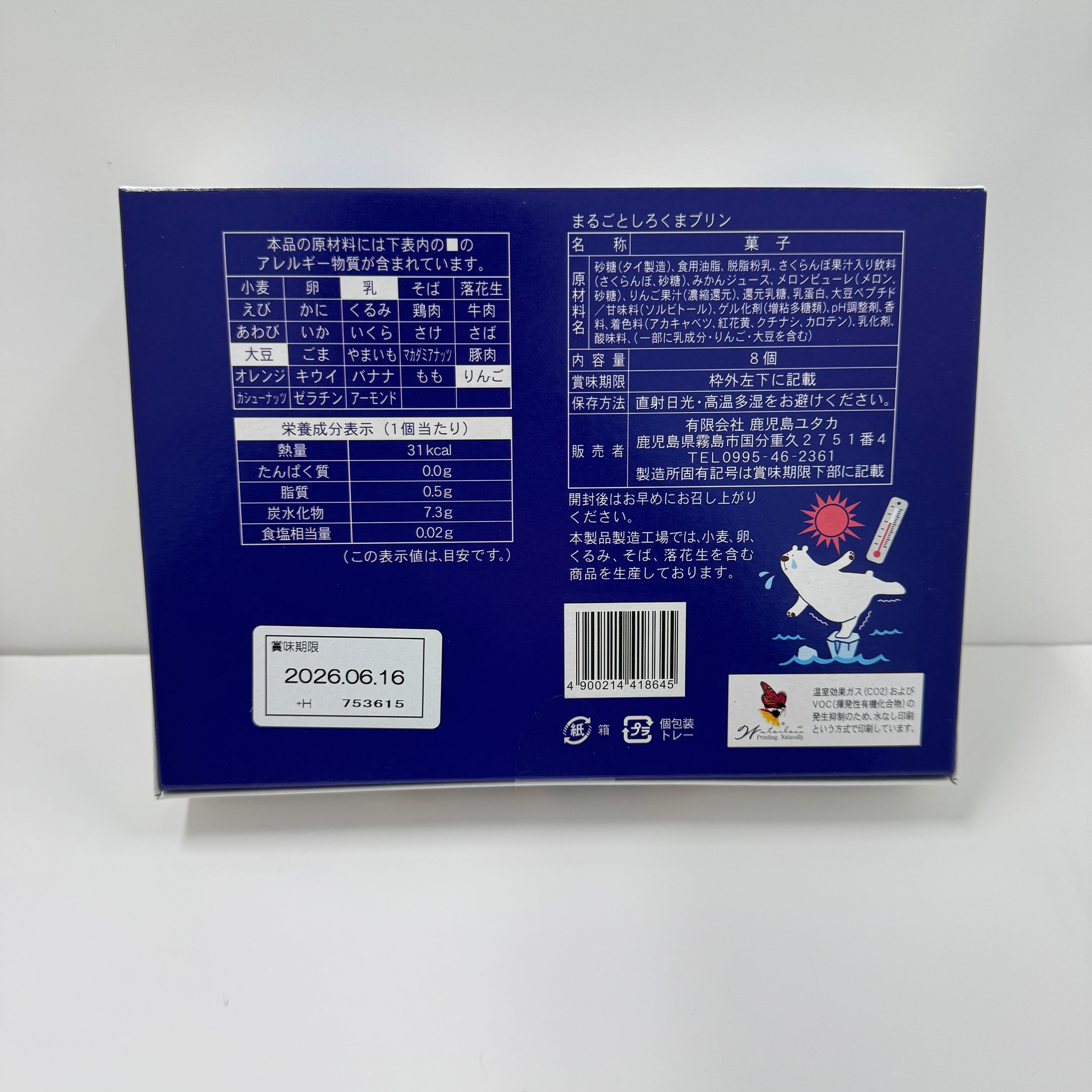 鹿児島名物『しろくま』をモチーフにした、練乳味のプリン。 フルーツ味で色とりどりの寒天が鮮やか! 個包装で食べやすく、可愛いパッケージは、多くのお客様から好評を頂いております! 召し上がる前に冷やして食べると美味しさアップでおすすめです! ※こちらは、常温で保存可能です。 内容量 8個 サイズ(縦×横×高さ) 14.5×20×3.5