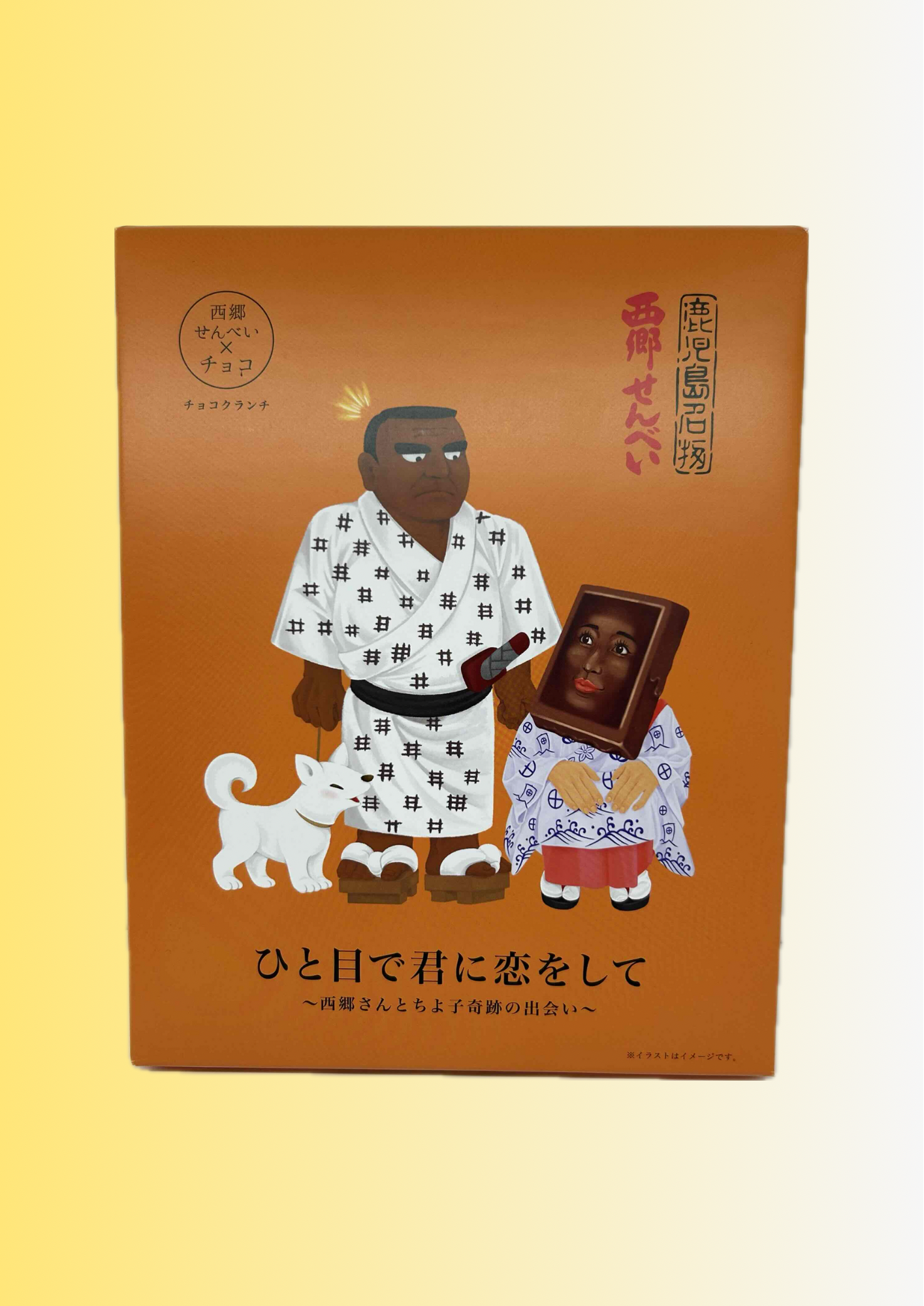 昔から大人気のお菓子「西郷せんべい」と、こちらも大人気シリーズ「ちよ子」とのコラボ商品。西郷せんべいのサクサクとした食感にチョコレートを混ぜたクランチチョコレートとなっています。