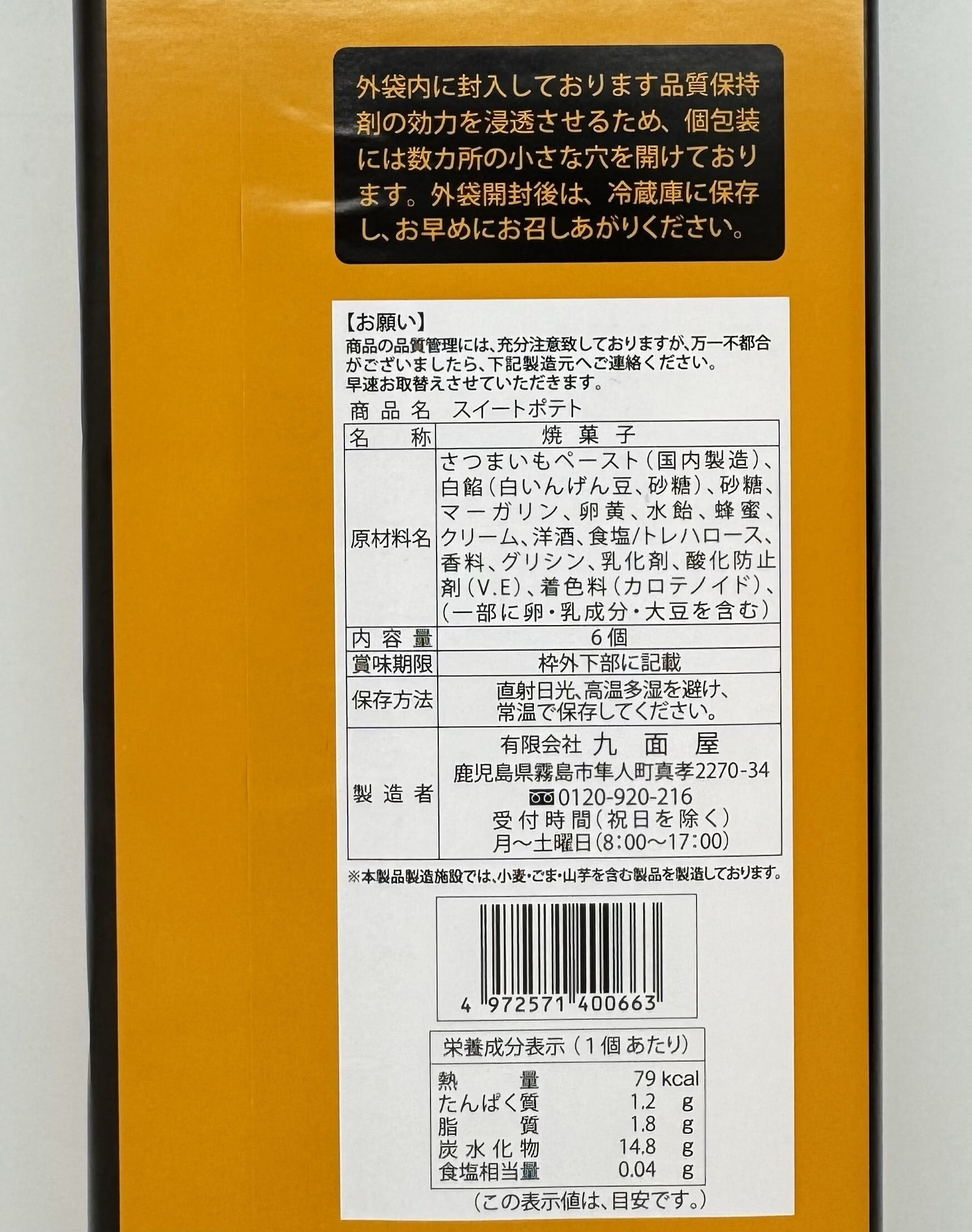 さつま芋を使用した、しっとり食べやすい、スイートポテト。 こちらは、6個入りになります。