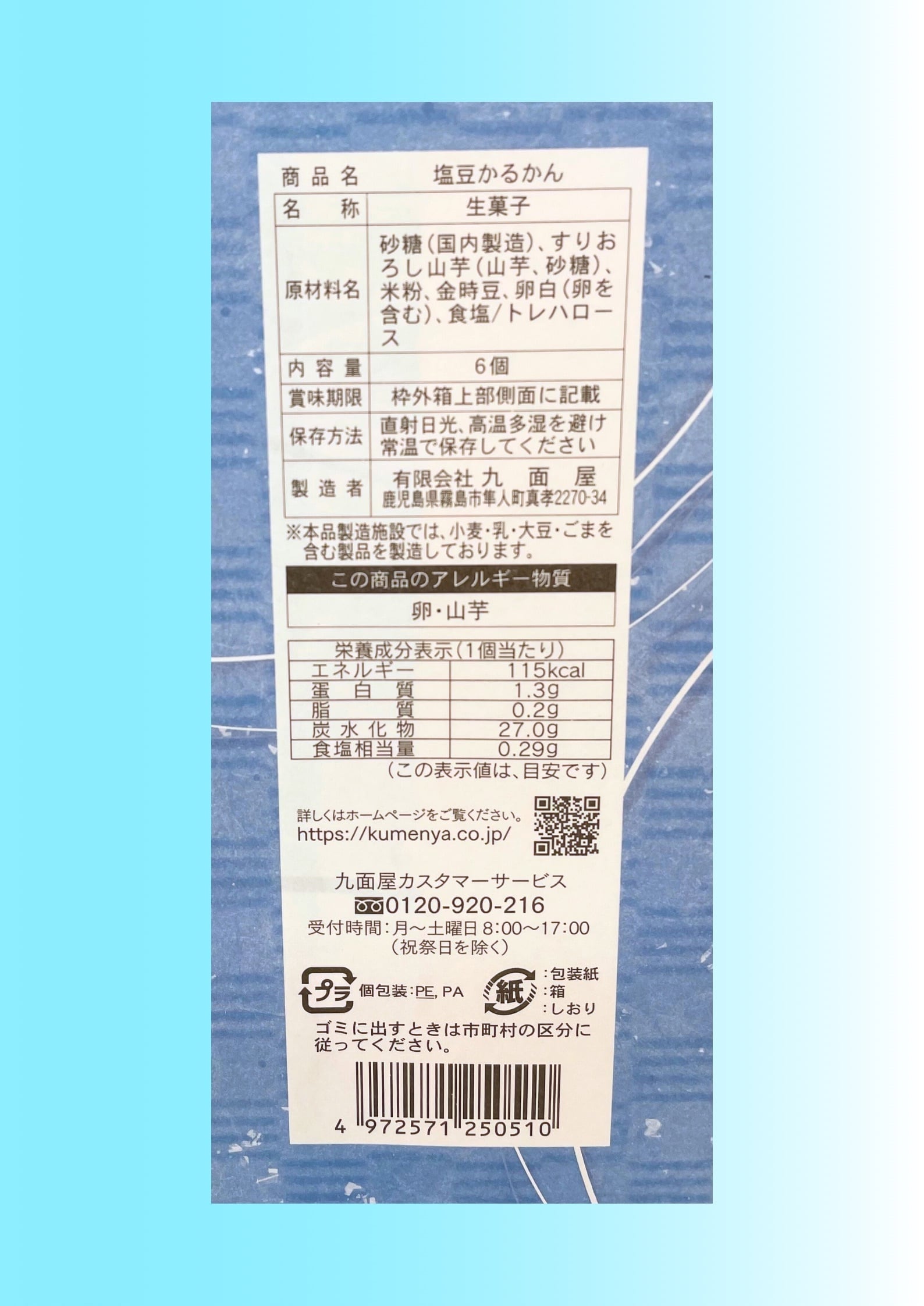 鹿児島県与論島の「星の砂塩」を練り込み、 北海道産の金時豆がトッピングされた塩辛さと甘みの調和がとれた新感覚のかるかん饅頭です! こちらは6個入りです。