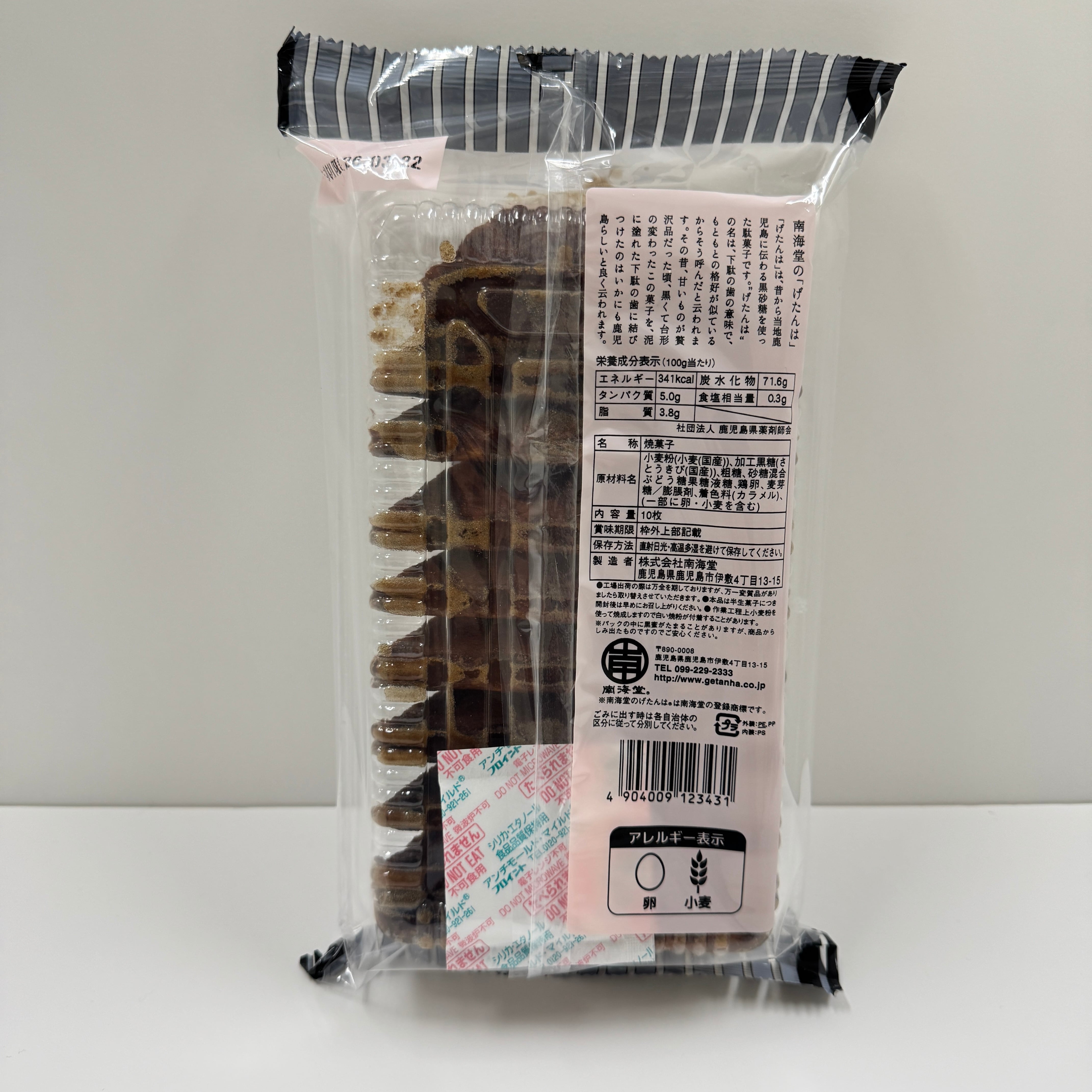 生地にたっぷり黒糖蜜を浸したお菓子。 黒糖蜜の上品な甘さとしっとりした食感。 下駄の歯に恰好が似ているところから名付けられた 『げたんは』は、鹿児島のシンボル『桜島』のようにも。 長年、鹿児島で愛されて続けてきた郷土菓子です。 内容量 10枚 サイズ(縦×横×高さ) 26×16×6