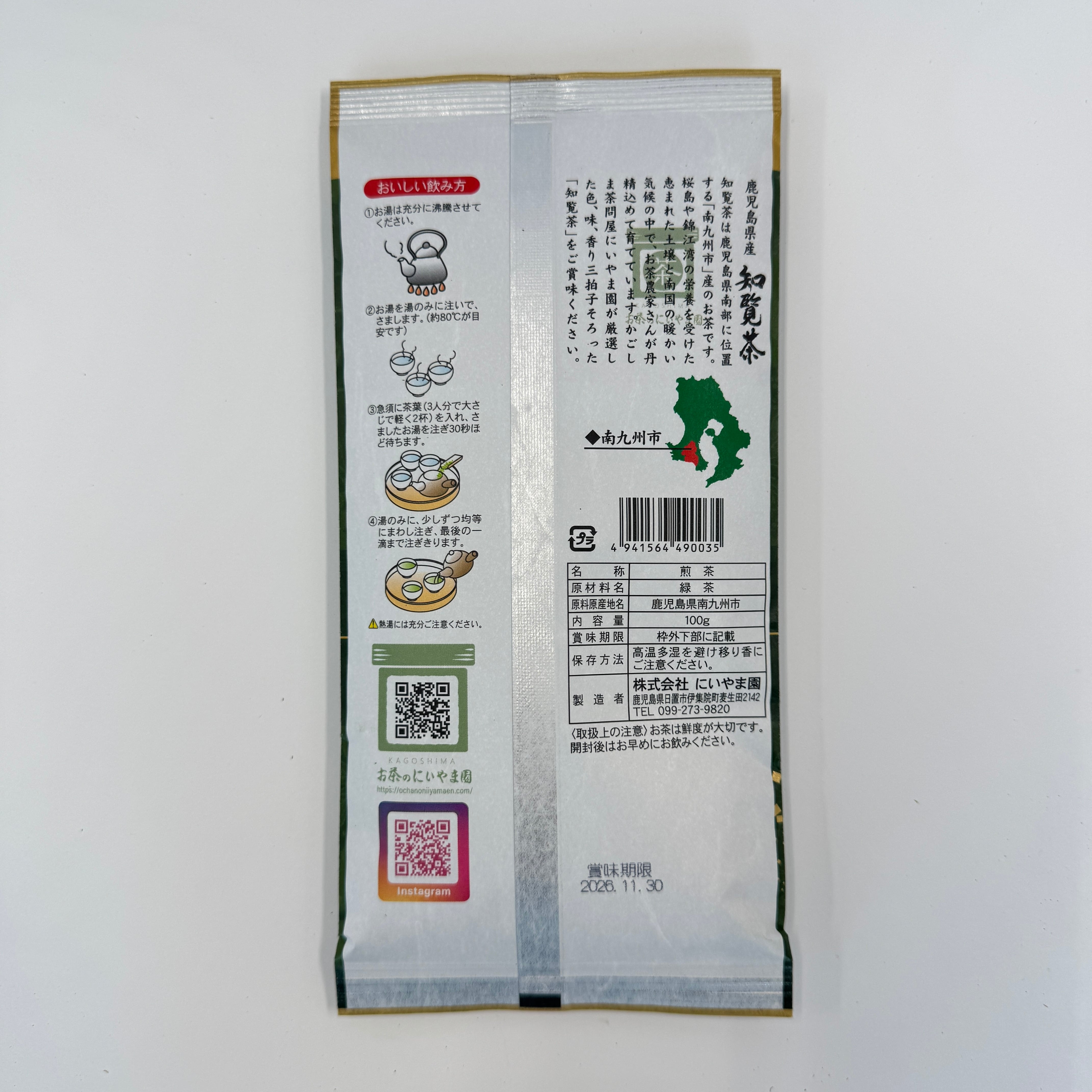 知覧茶は鹿児島南部に位置する「南九州市」産のお茶です。 桜島や錦江湾の栄養を受けた恵まれた土壌と南国の暖かい気候の中で、 お茶屋さんが丹精込めて育てています。 厳選した色、味、香りの三拍子揃った「知覧茶」をぜひご賞味下さい。 内容量 100g