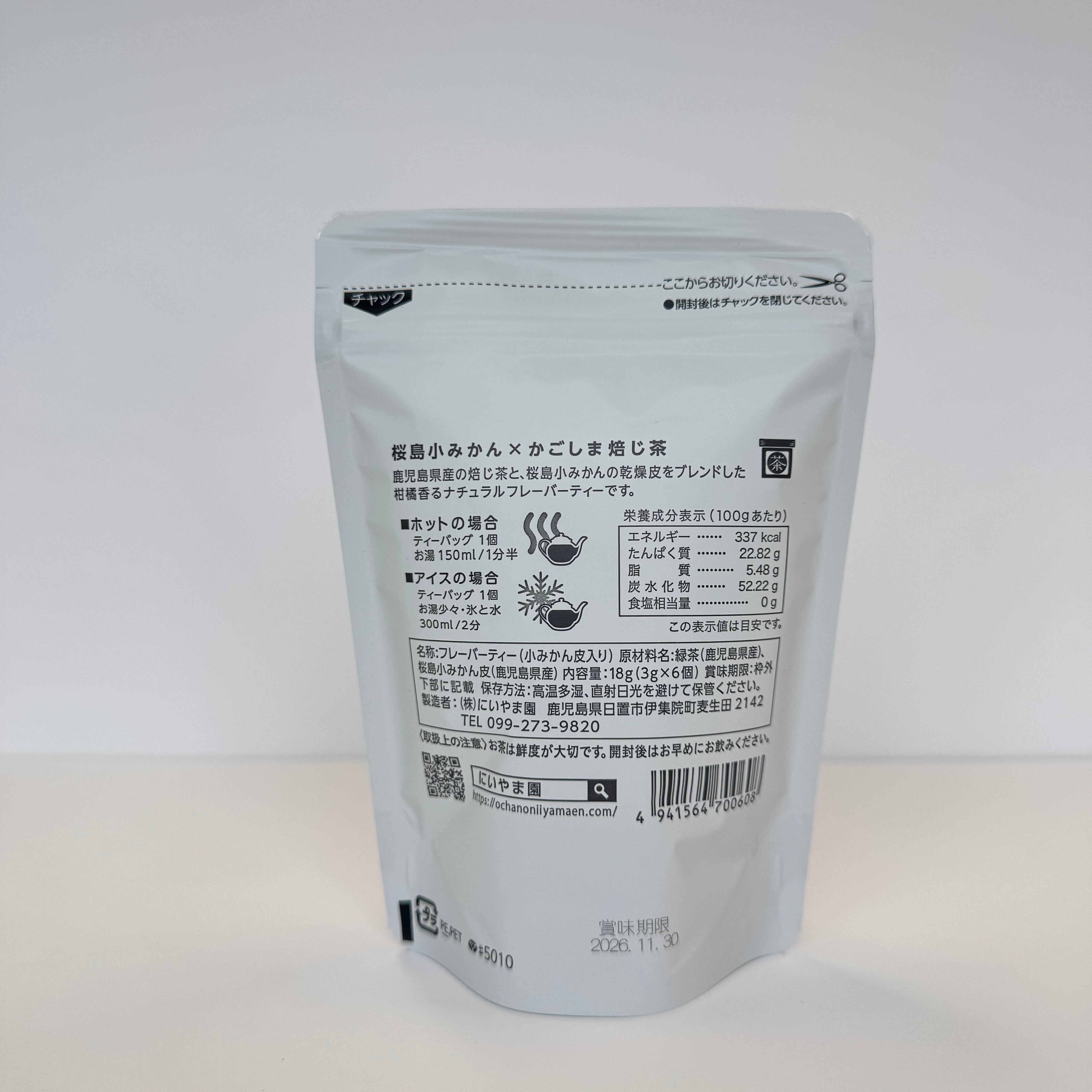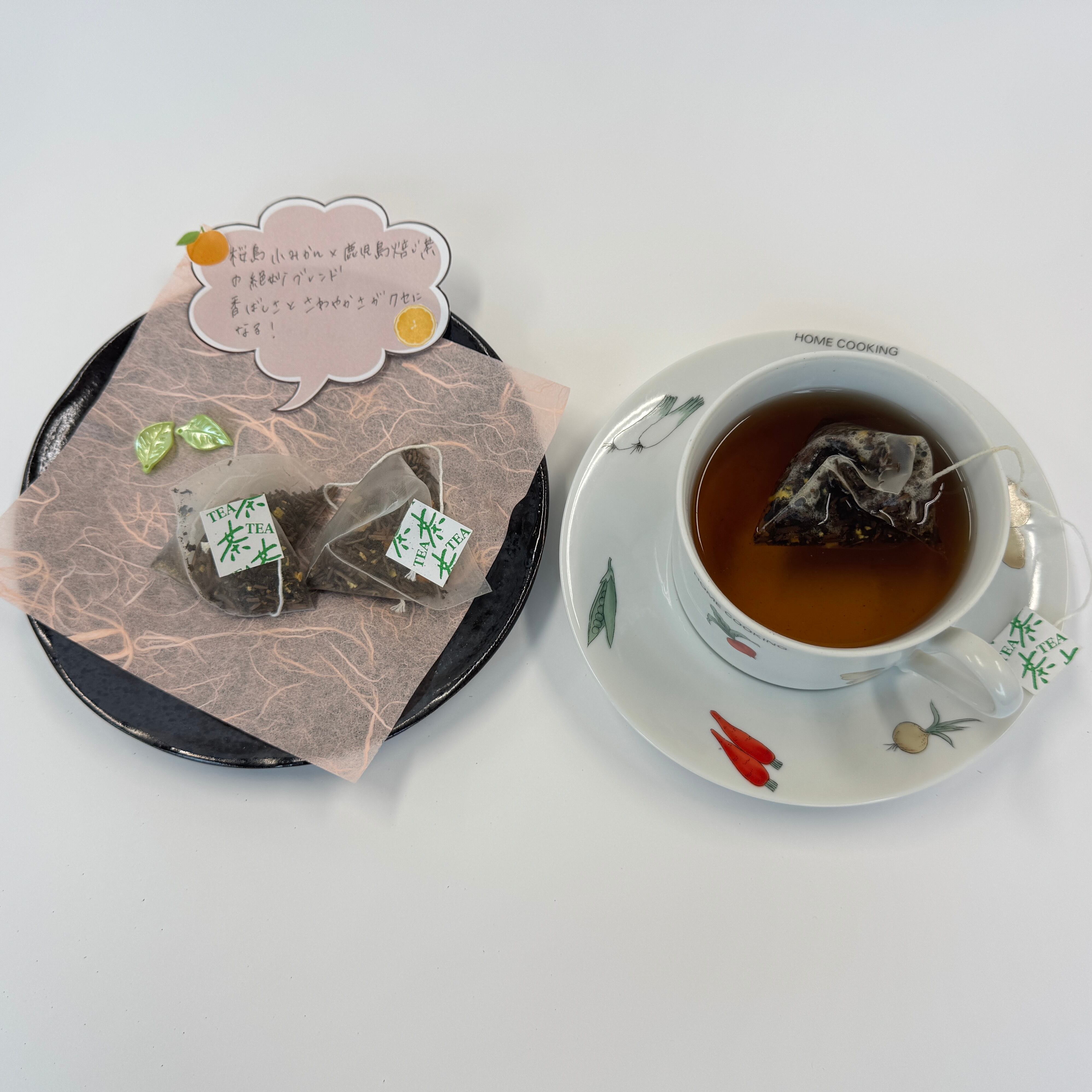 鹿児島県産の焙じ茶と、桜島小みかんの乾燥皮をブレンドした 柑橘香ナチュラルフレーバーティーです。 内容量 18g(3g×6個)