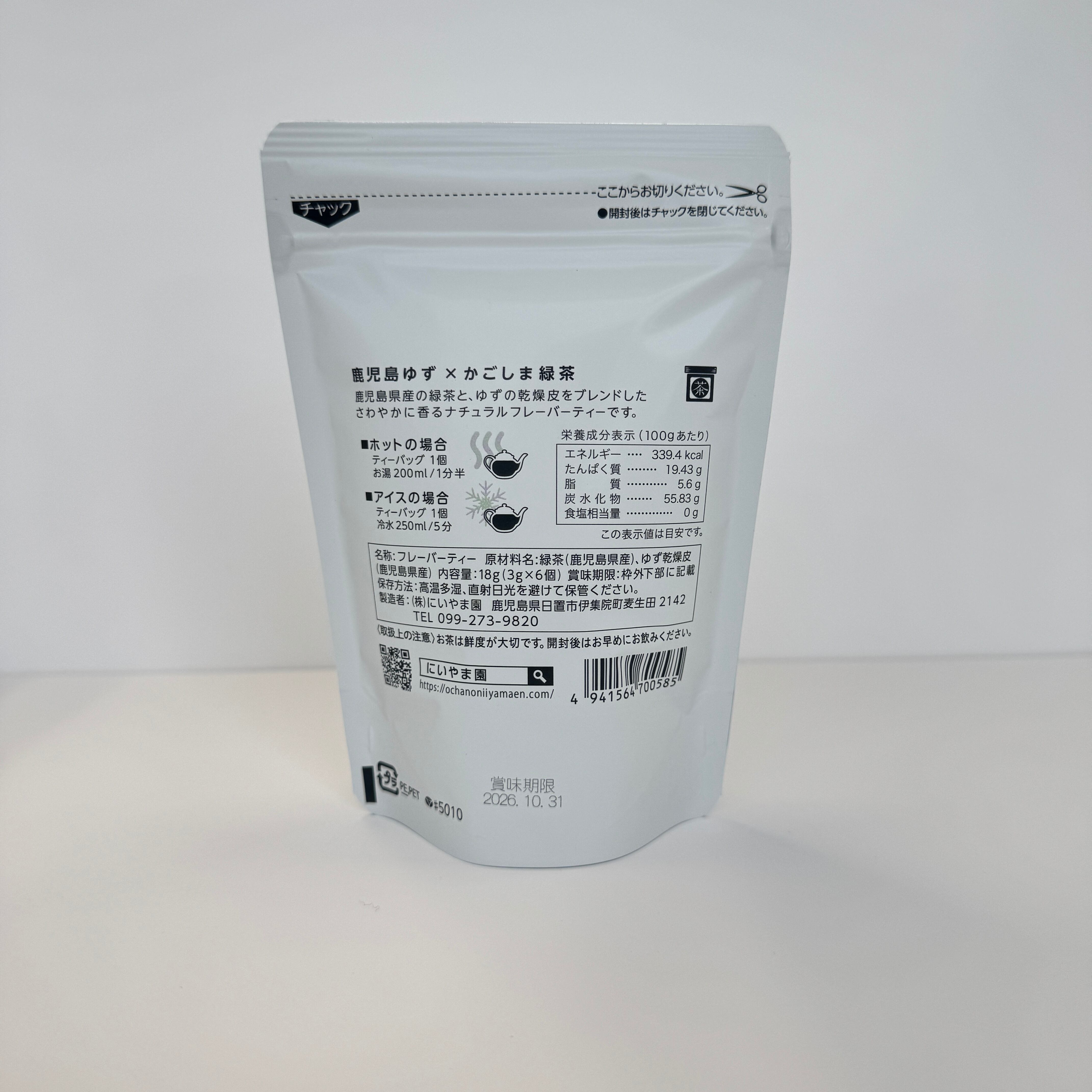 鹿児島県産の緑茶と、ゆずの乾燥皮をブレンドした さわやかに香るナチュラルフレーバーティーです。 内容量 18g(3g×6個)