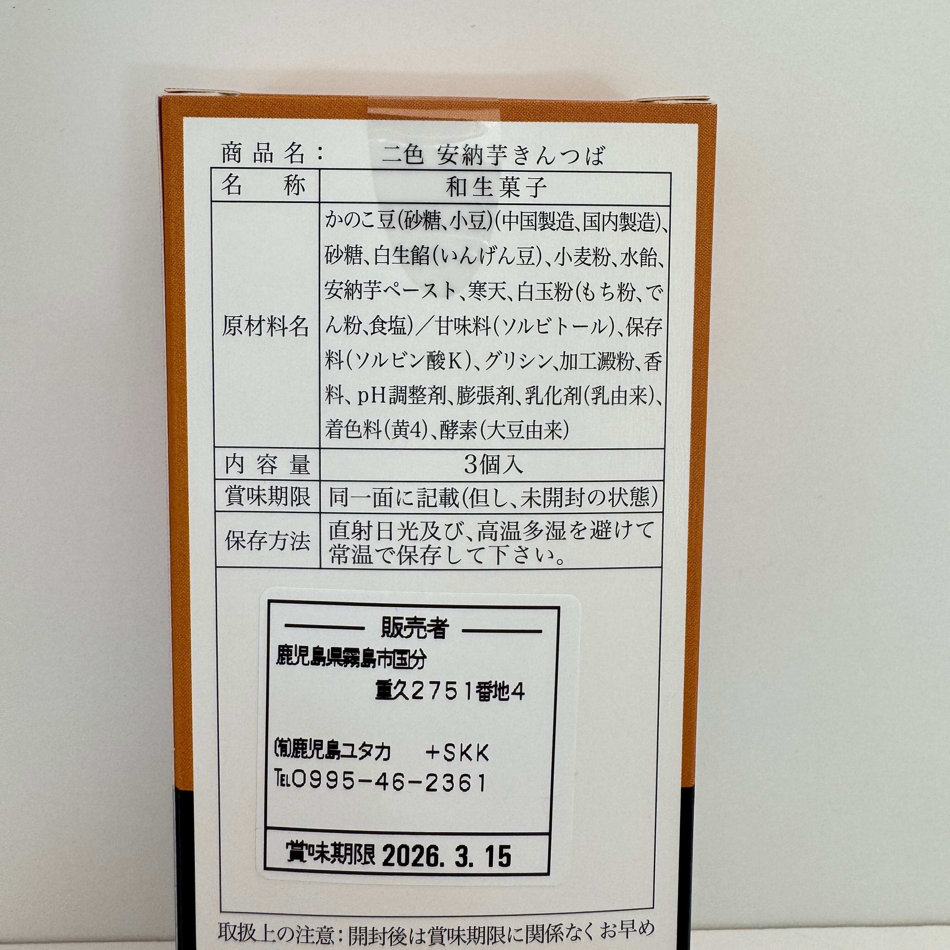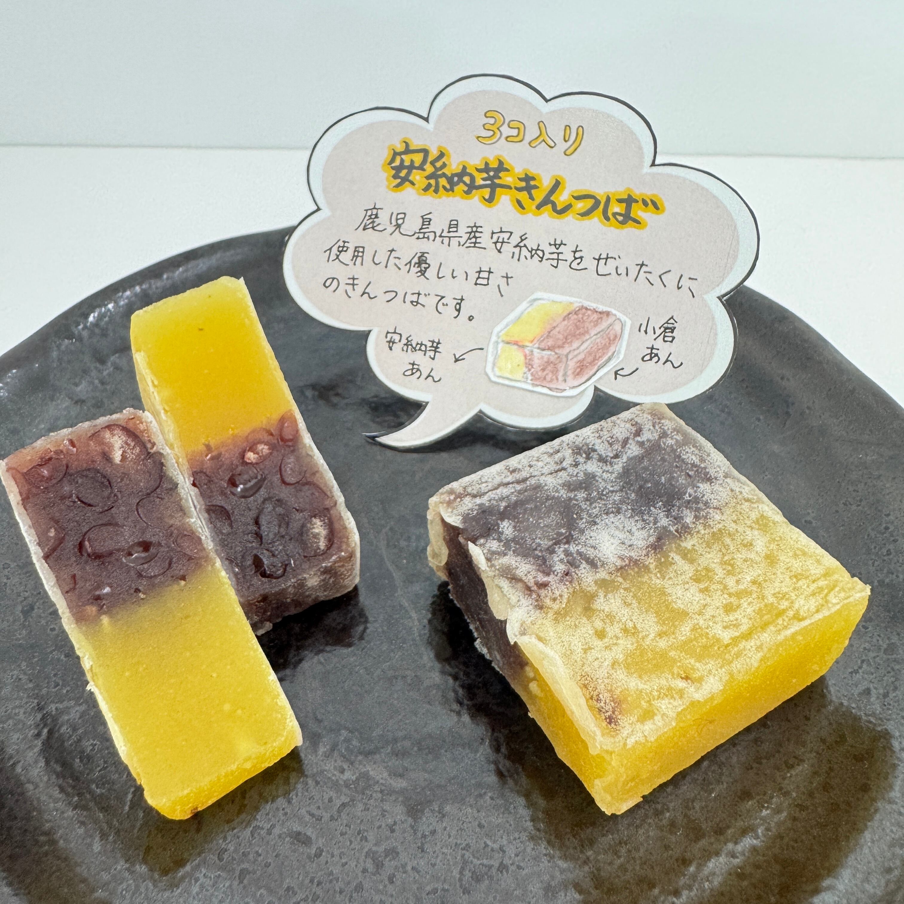 鹿児島県産安納芋を贅沢に使用しており、安納芋のほくほくしたやわらかい甘みと 小豆の上品さが絶妙にマッチ!! 一度で二度美味しいきんつばです。 内容量 3個