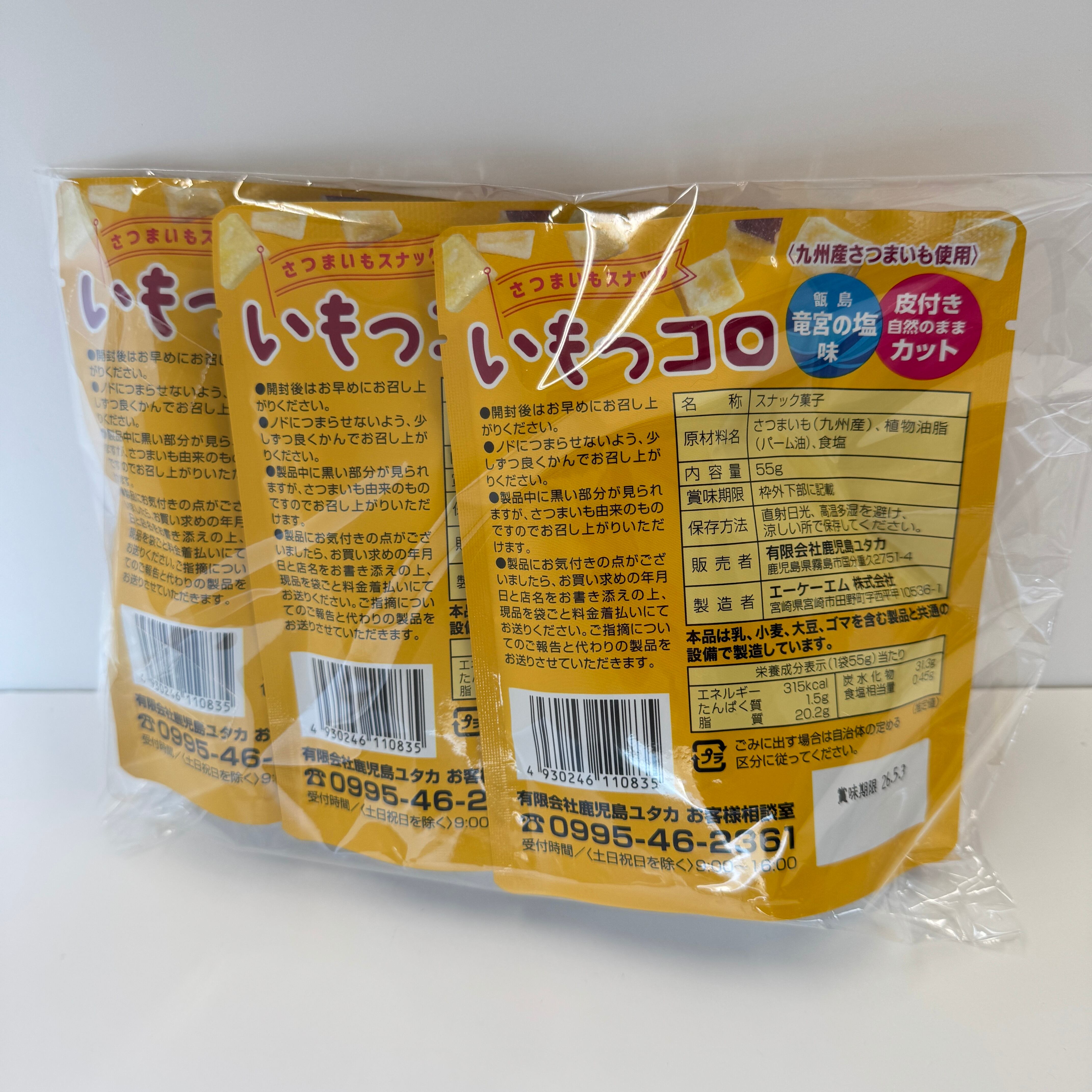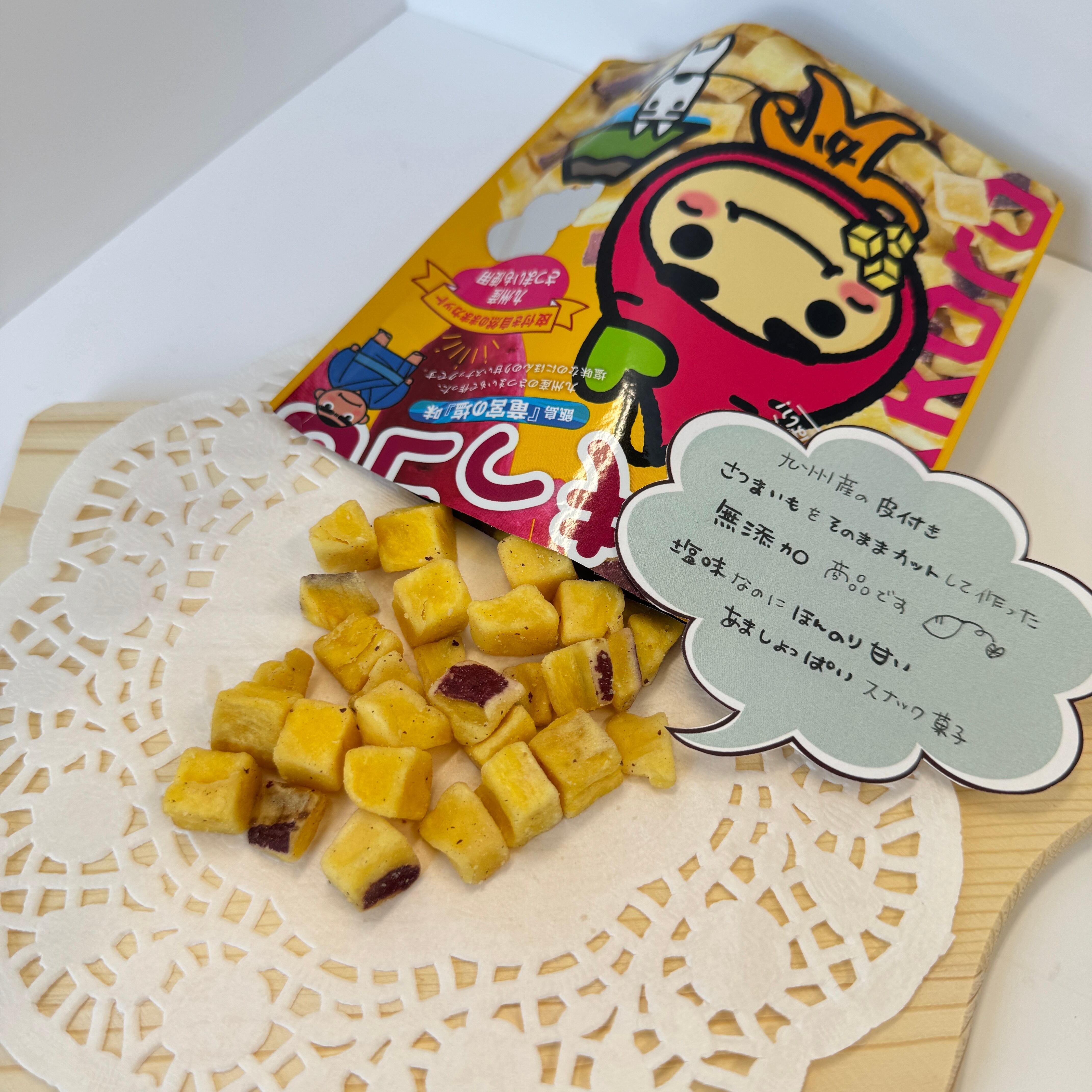 九州産さつまいもを皮付きのままカットして作った、 塩味なのにほんのり甘いスナックです。 コロコロ可愛いキューブタイプで、さっくり美味しい☆ 一度食べたら止まらない!! ※単品販売はしておりません。3袋セットのみとなります。 内容量 55g×3袋