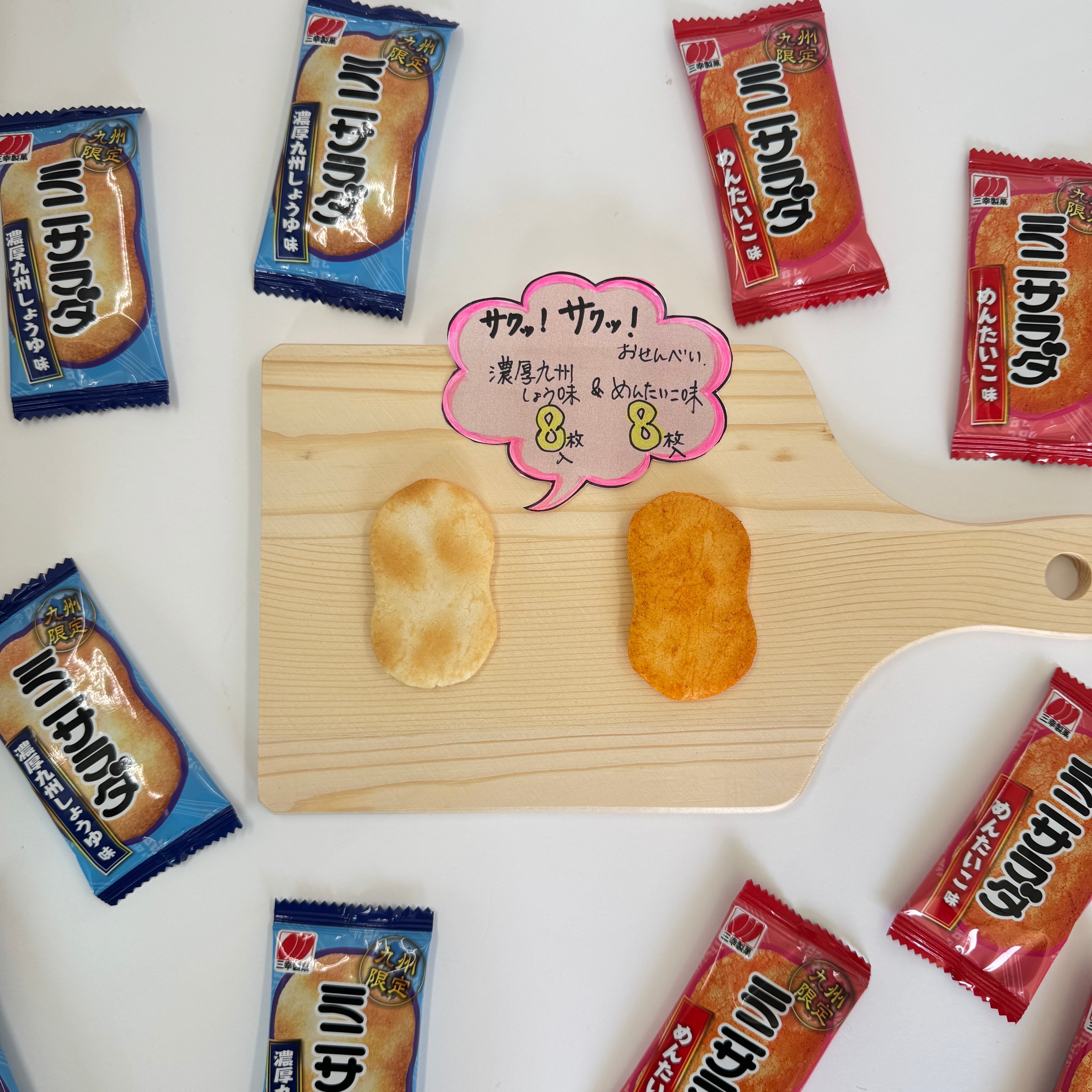 ミニサラダの九州限定商品☆ 濃厚九州しょうゆ味と明太子味の2種類入りです!