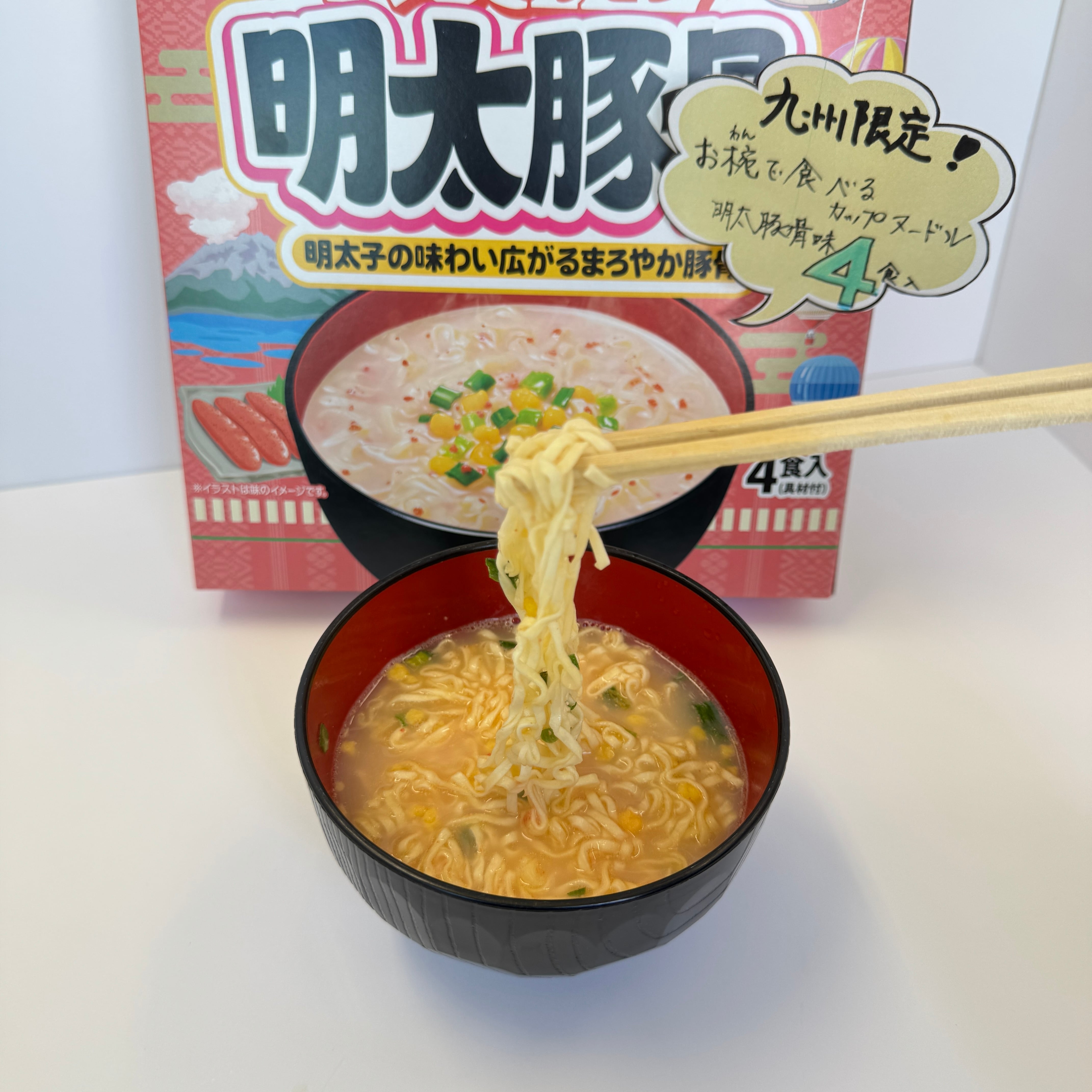 まろやかな豚骨スープに明太子が溶け込んで``ばりうまか~!!‘‘ 包装されているのでお友達や家族のお土産にピッタリ☆