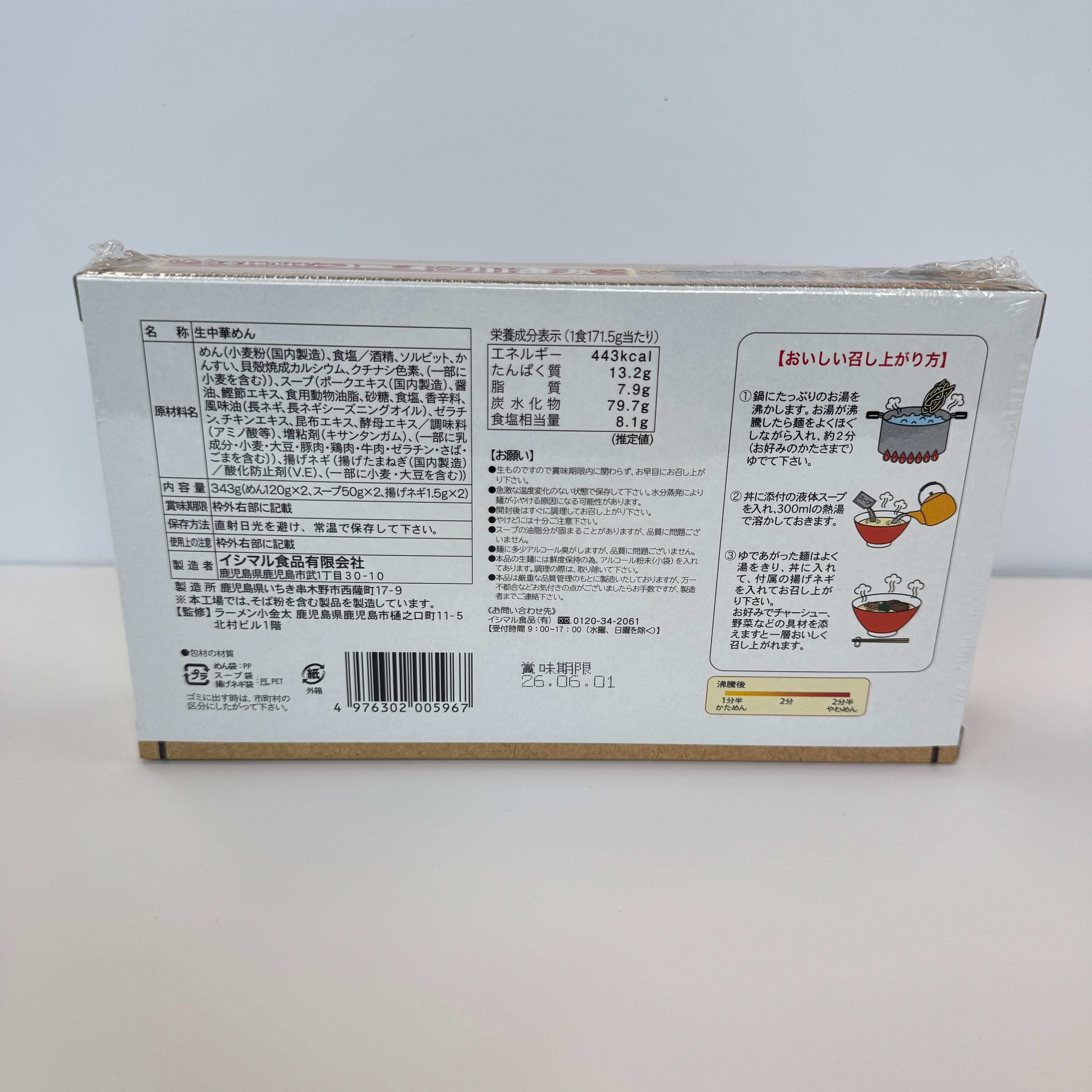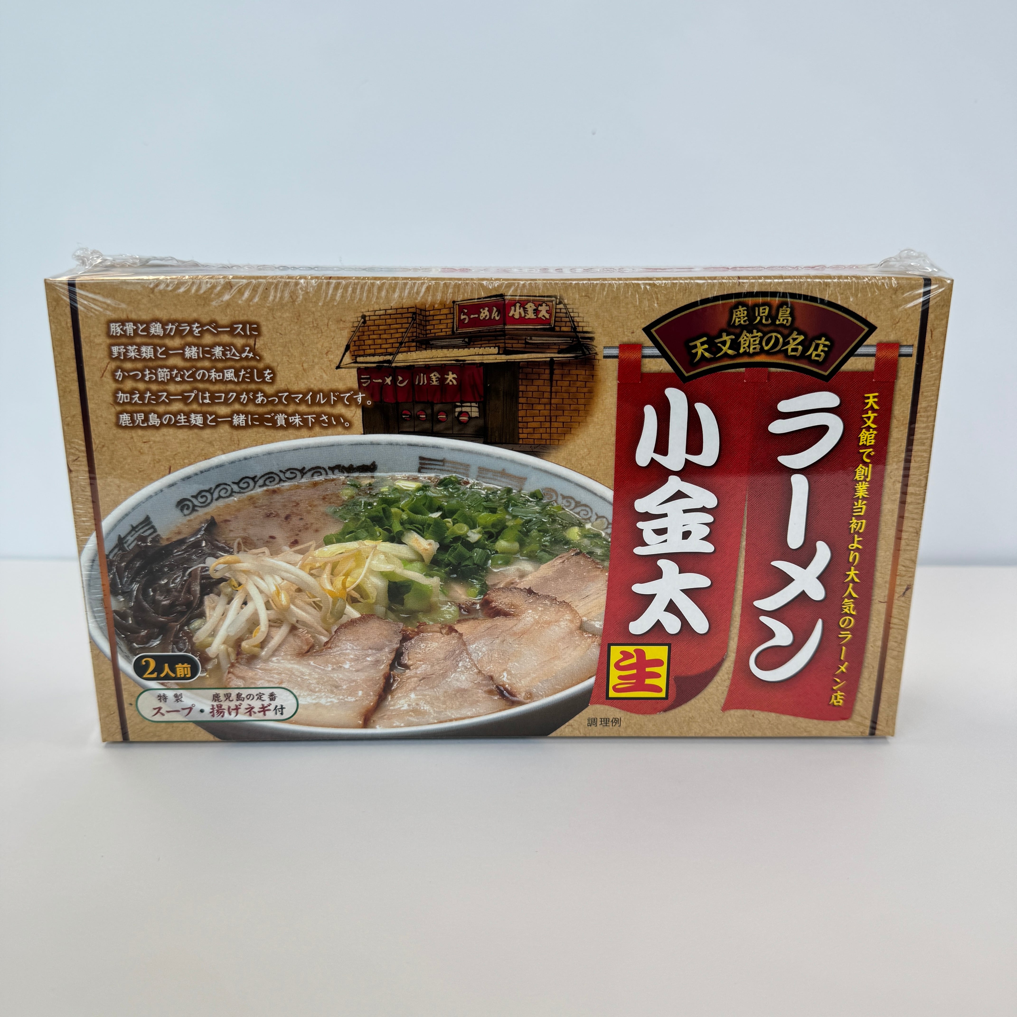 鹿児島でも大人気の小金太ラーメンが 生麵のお土産用になって登場!! 豚骨と鶏ガラをベースに野菜類と一緒に煮込み、 かつお節などの和風だしを加えたスープはコクがあって マイルドです。 内容量:2食入り