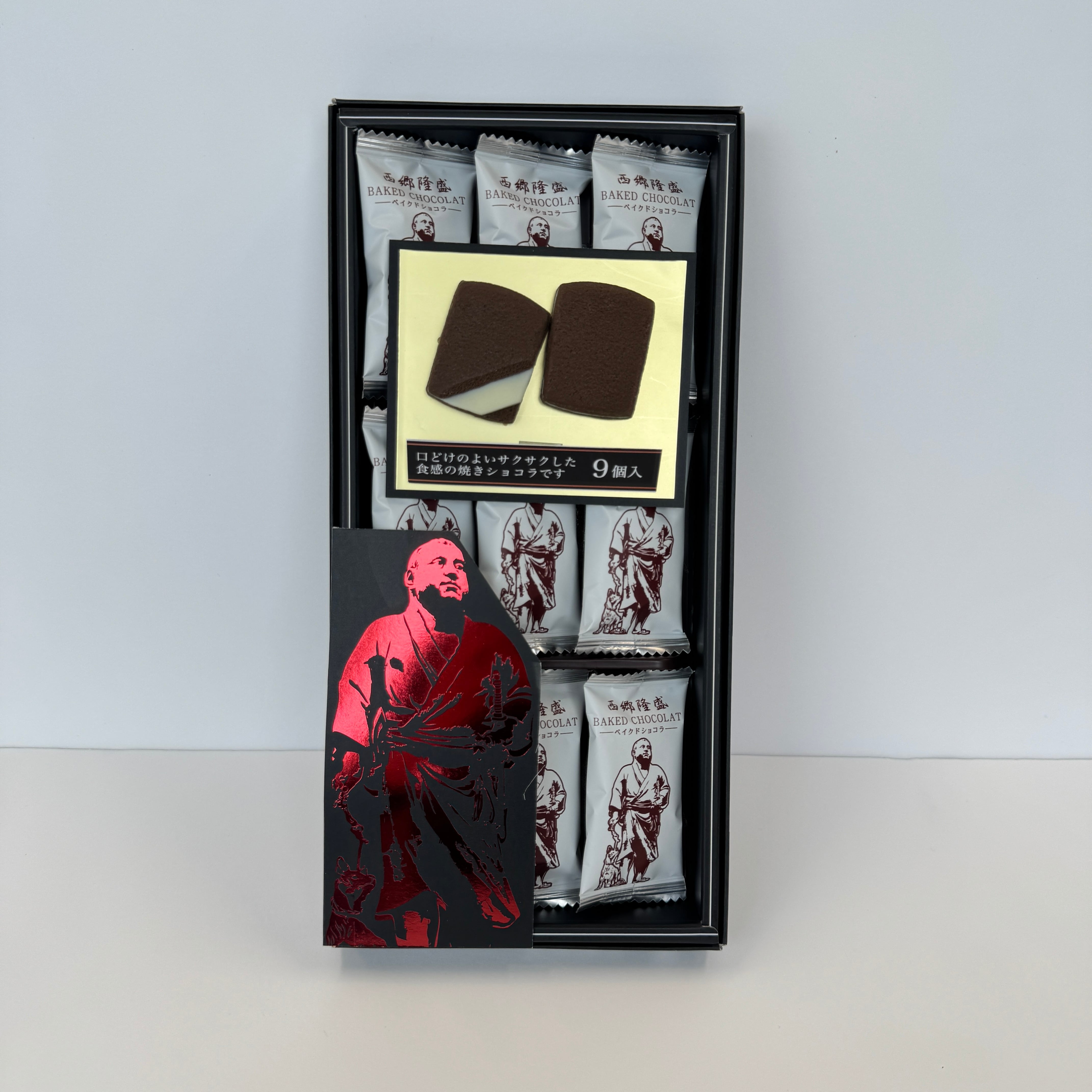 西郷さんのパッケージが印象的! 前世代が喜ぶ、 口どけの良い、サクサクとした食感の焼きショコラです。 ※内容量:9個入り